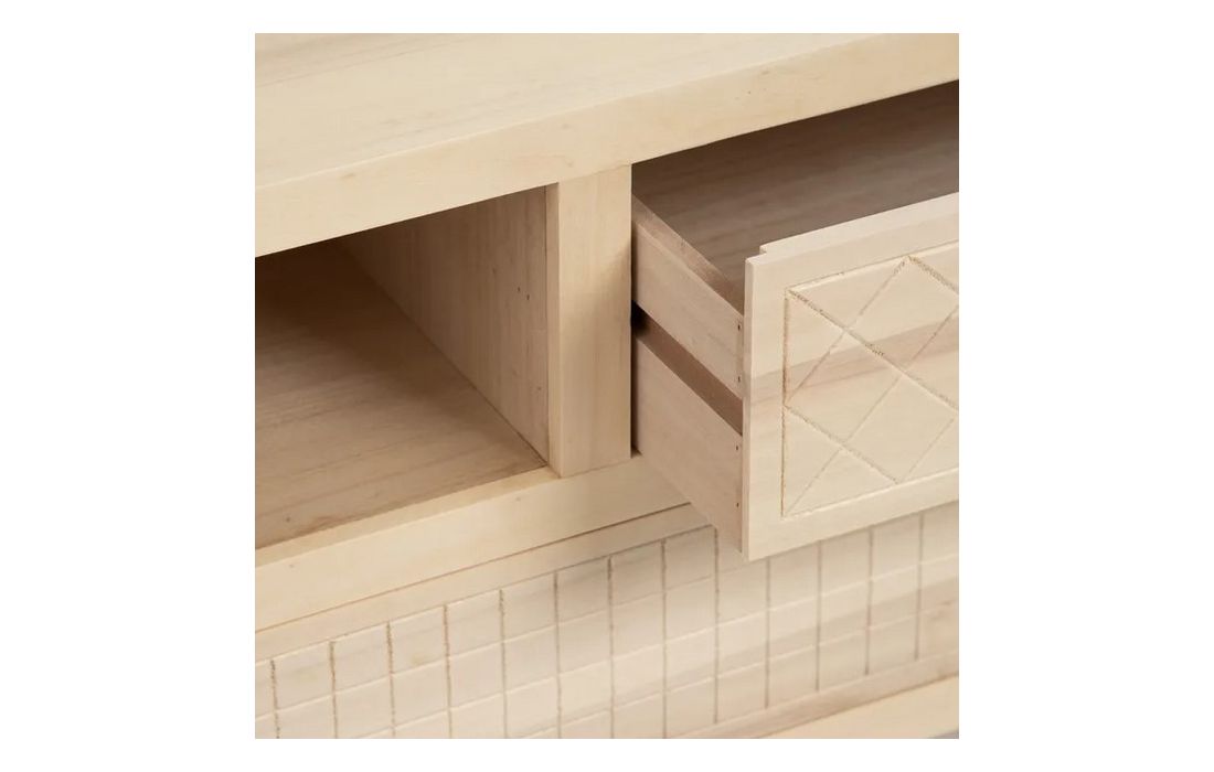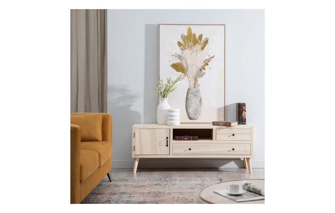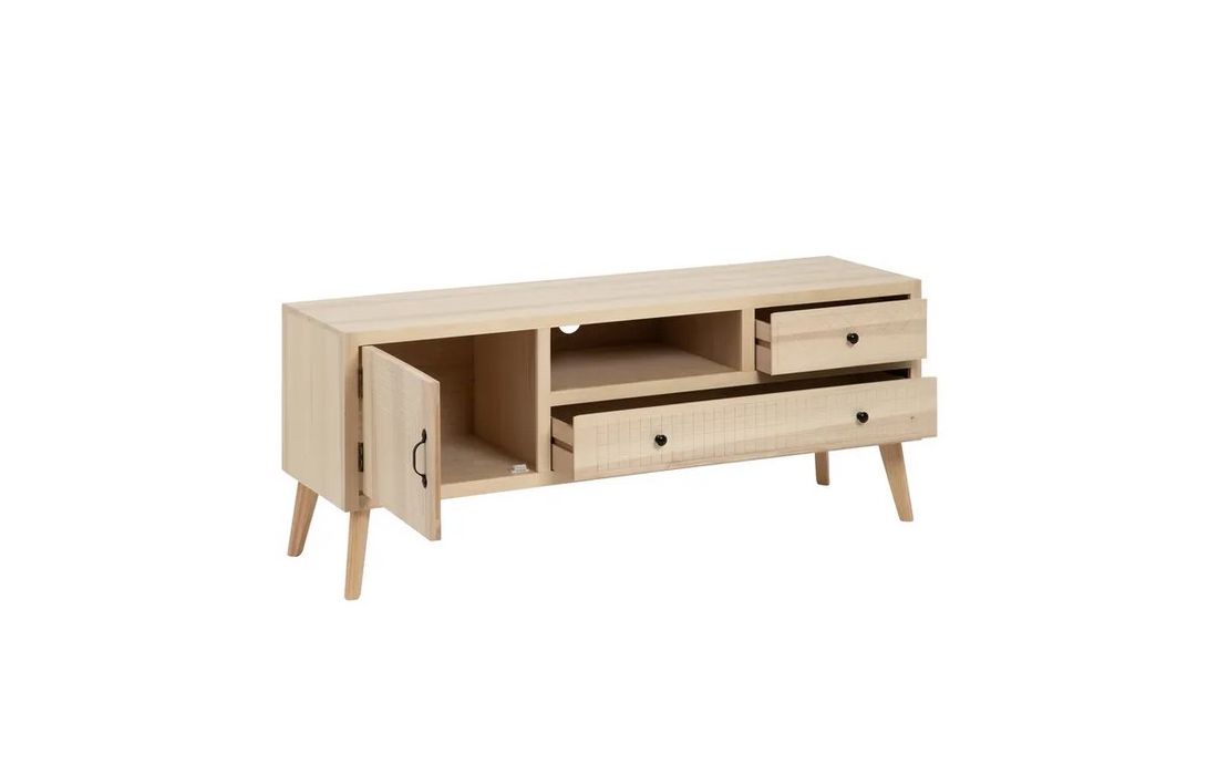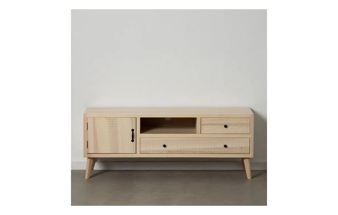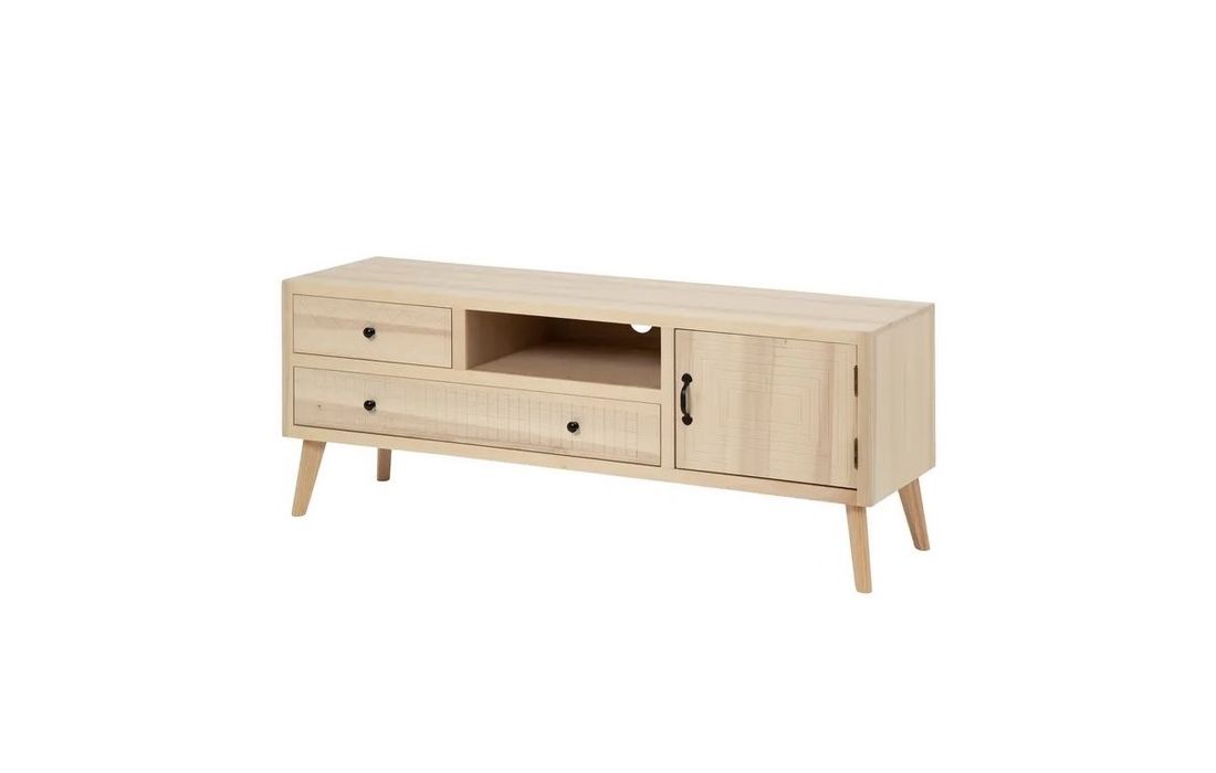 Base de TV com uma porta e 2 gavetas em madeira de choupo e mdf, na cor natural.Destinatário :