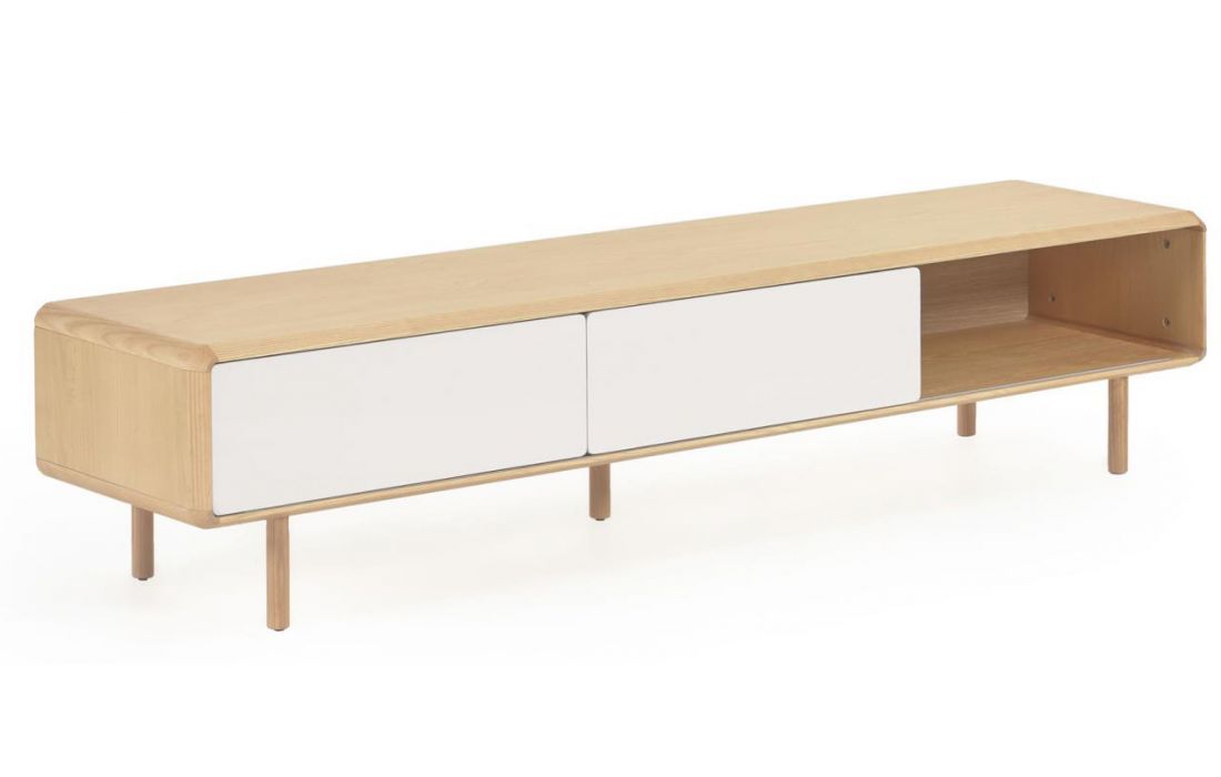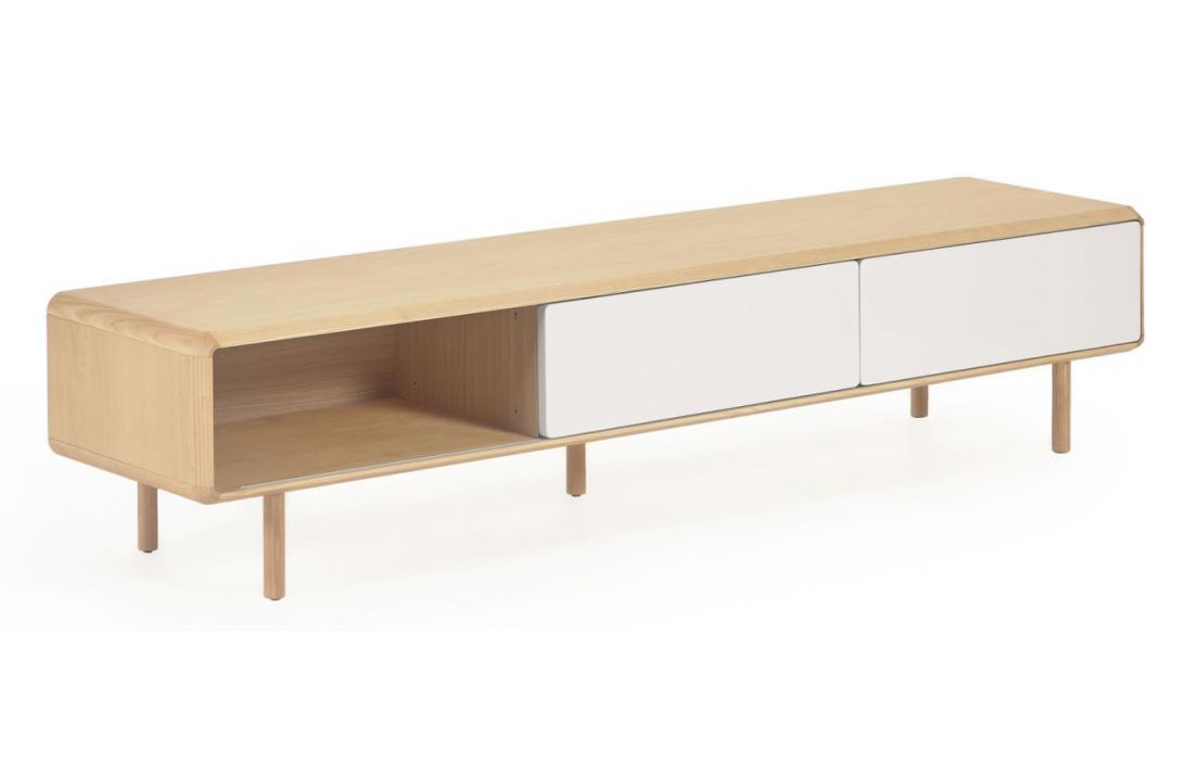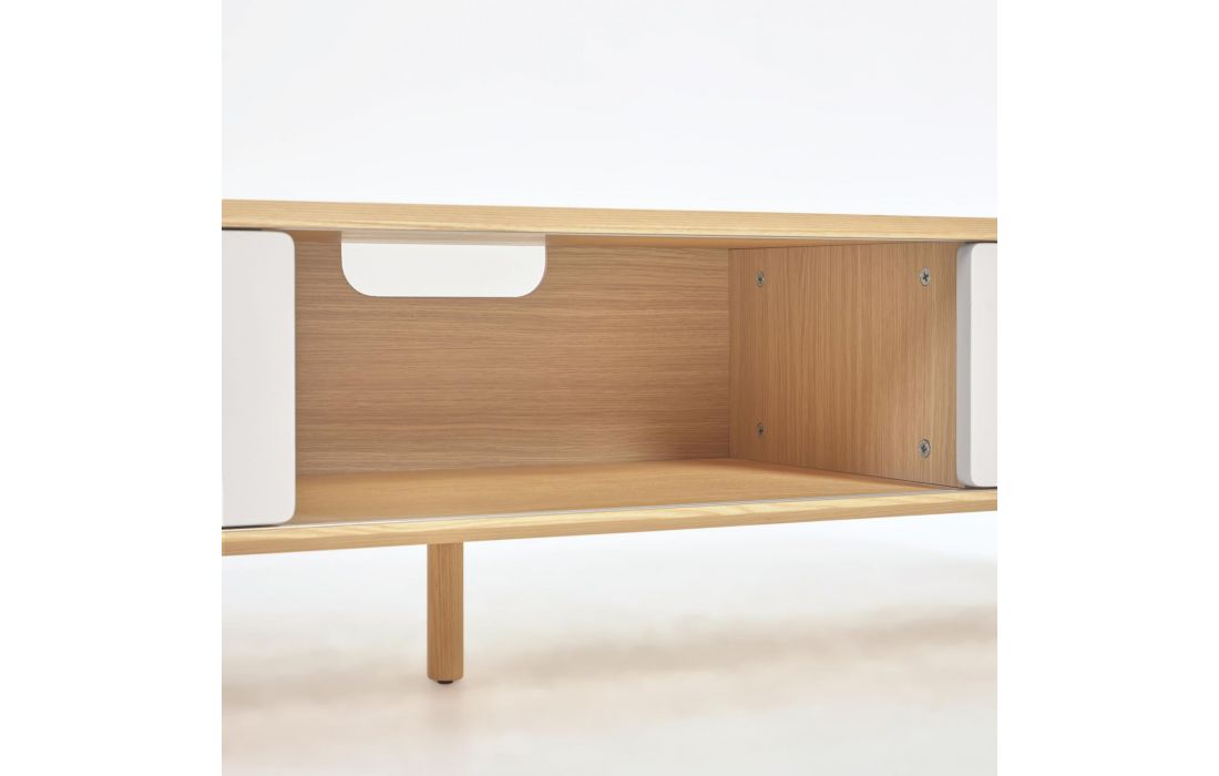 Base TV de 2 portas de correr em madeira de freixo com frente lacado branco