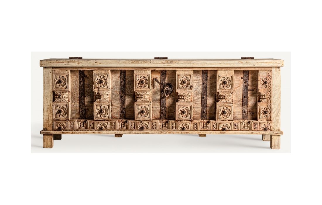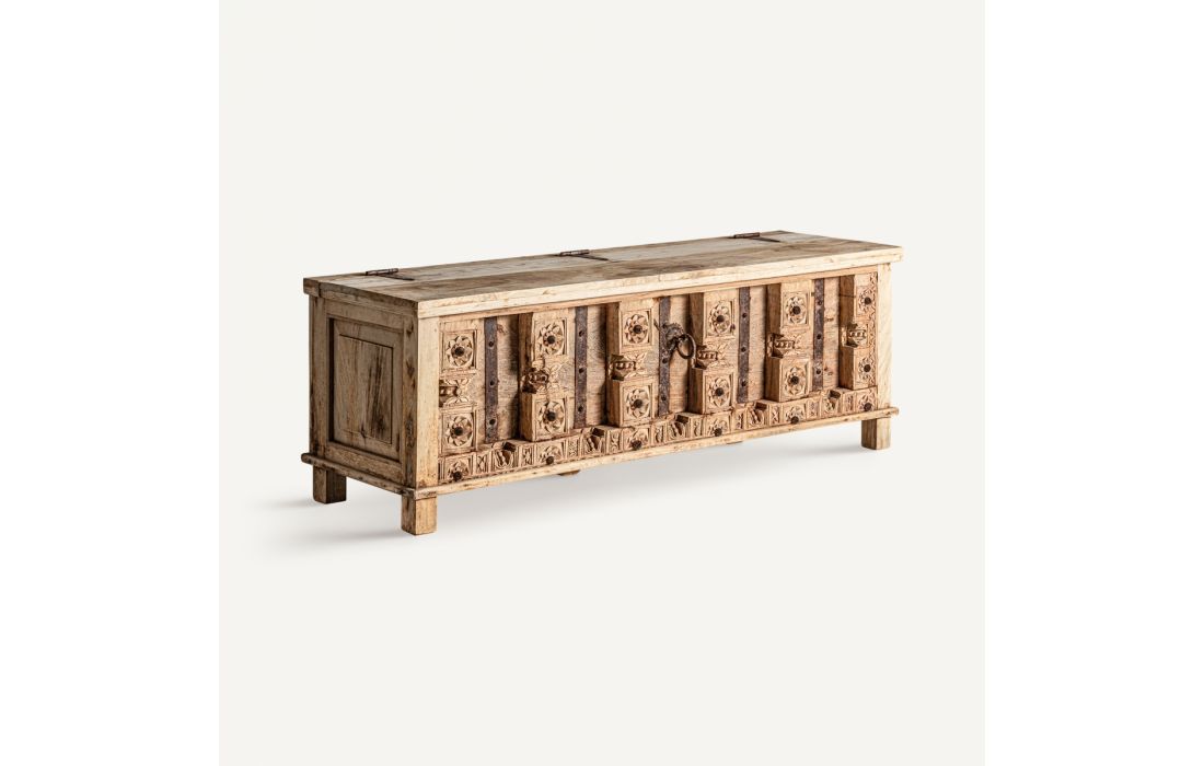 Base tv fabricado em madeira de mango na cor natural envelhecido , com estilo étnico.Prazo de Entrega