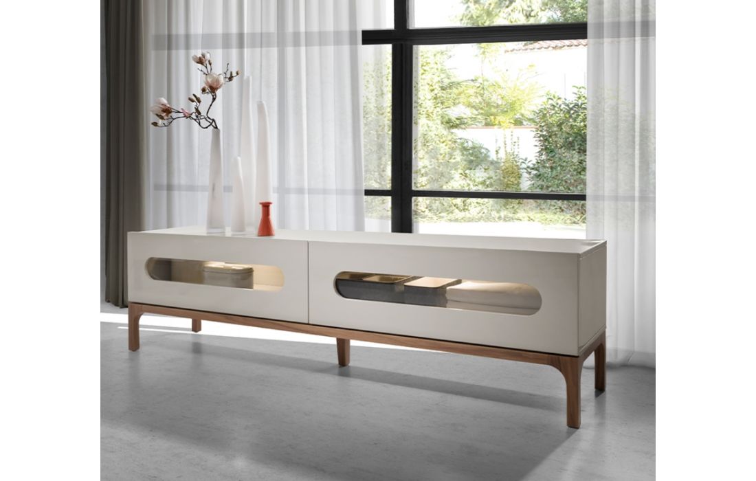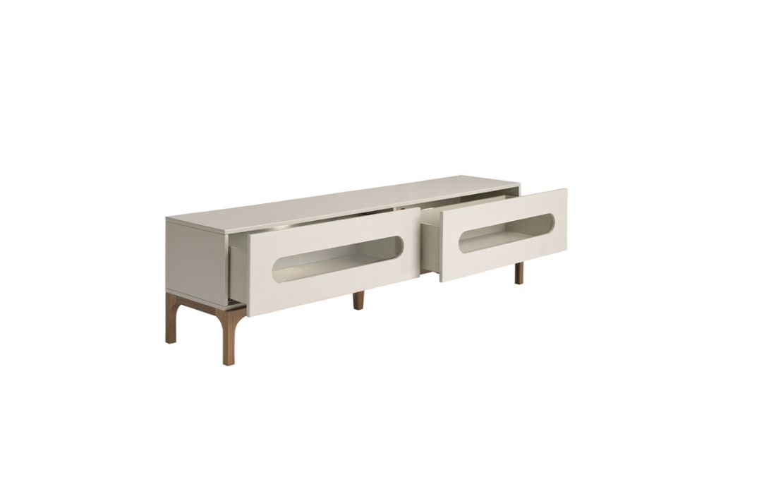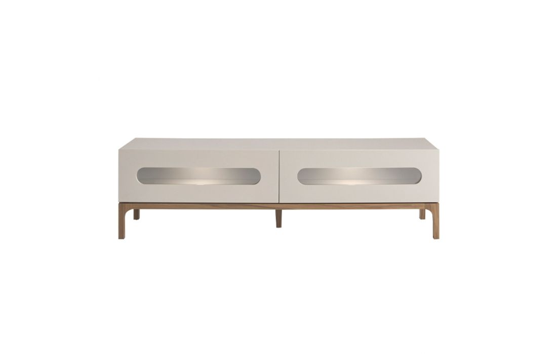 Base de TV moderno com estrutura em MDF e pés em MDF na cor nogueira, com iluminação interior, com o seu detalhe em vidro dá o toque de estilo e possui um amplo espaço de arrumação com 2 gavetasDestinatário :