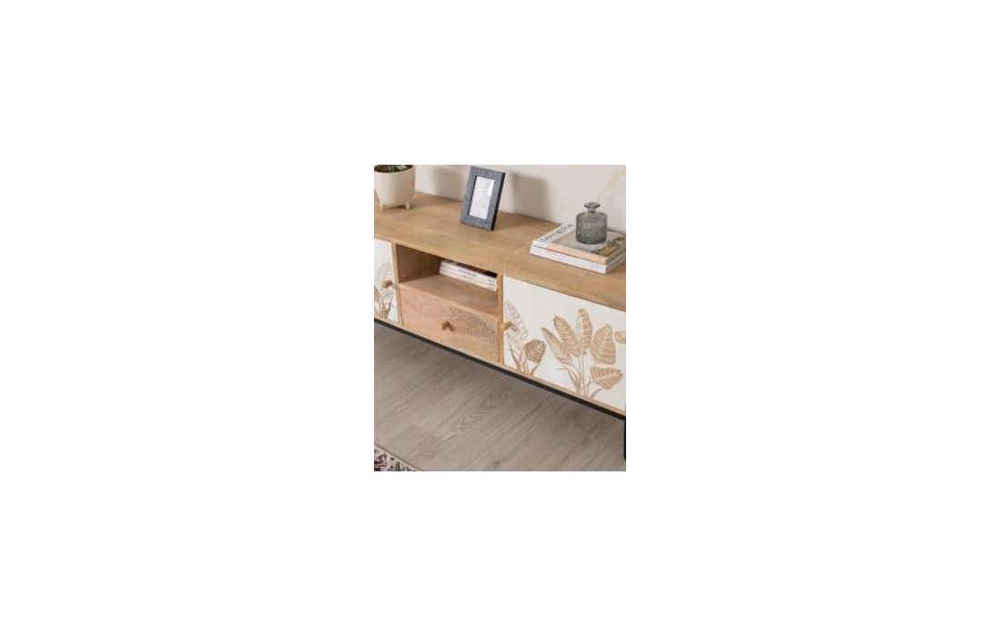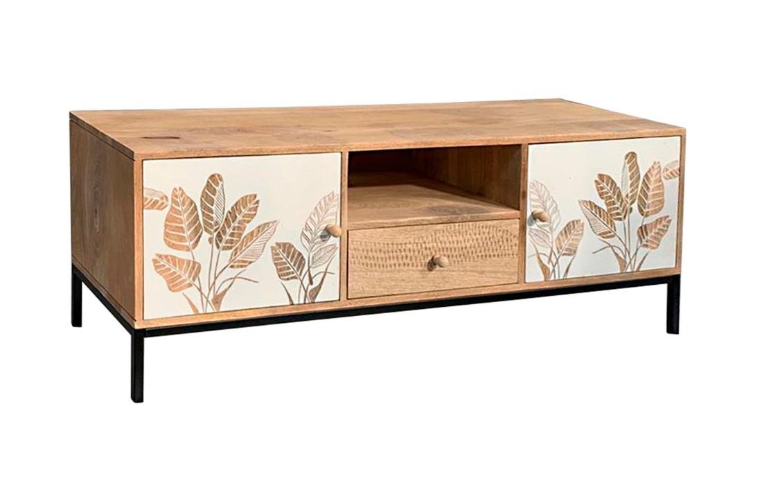 Base tv com estrutura em madeira de mango com 2 portas e 1 gaveta.Destinatário :