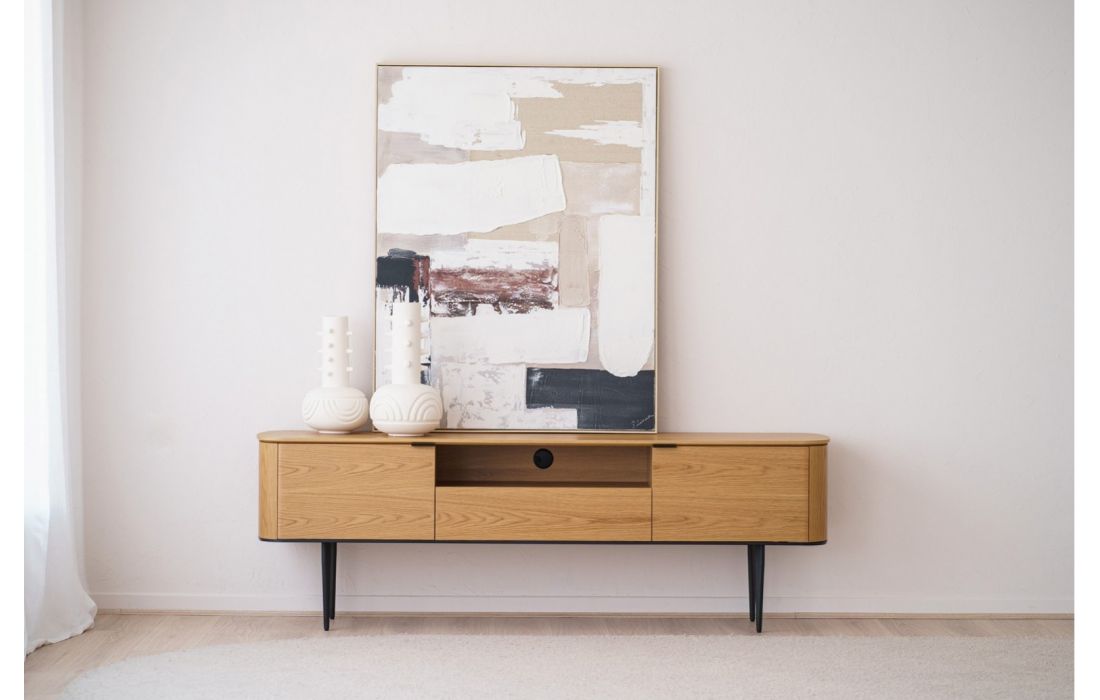Base tv com estrutura em madeira de carvalho com 2 portas e 1 gaveta. Pés em metal.Destinatário :