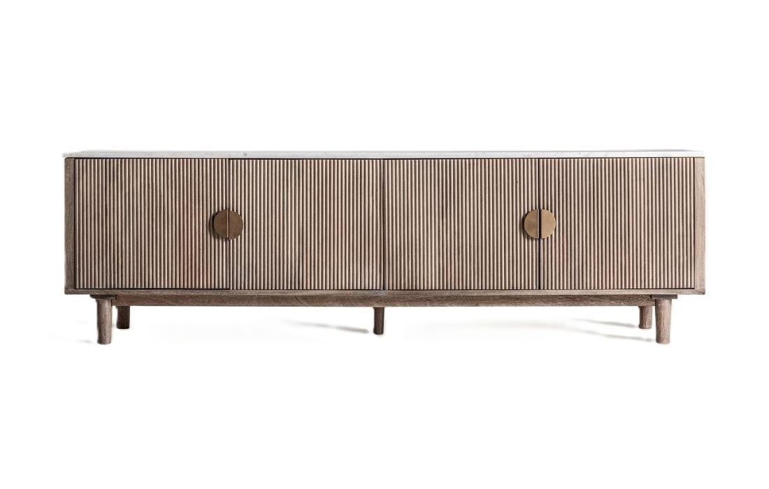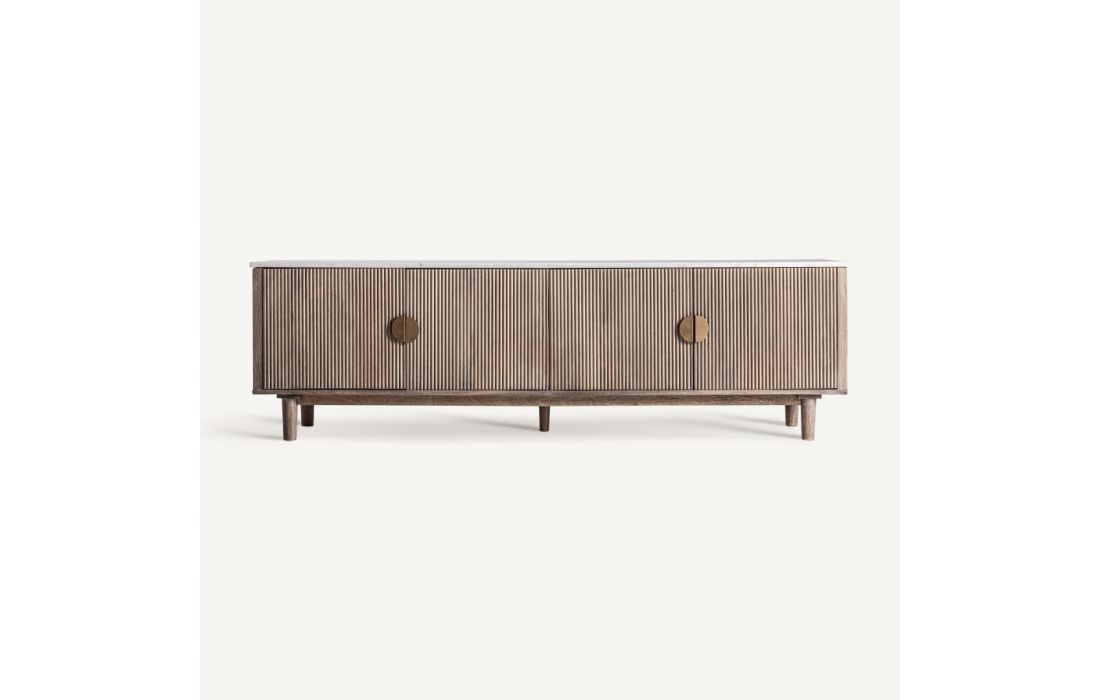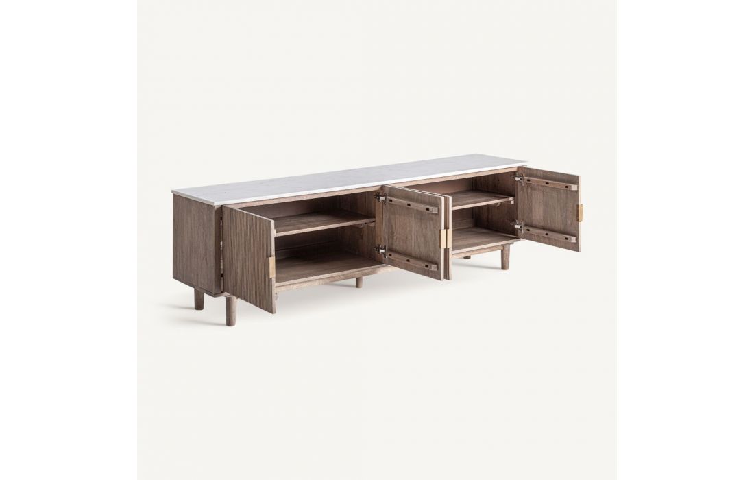 Móvel para TV fabricado em madeira de mango com a elegância do mármore branco, com um design linear e estrutura em MDF proporcionam equilíbrio visual e funcionalidadeDestinatário :