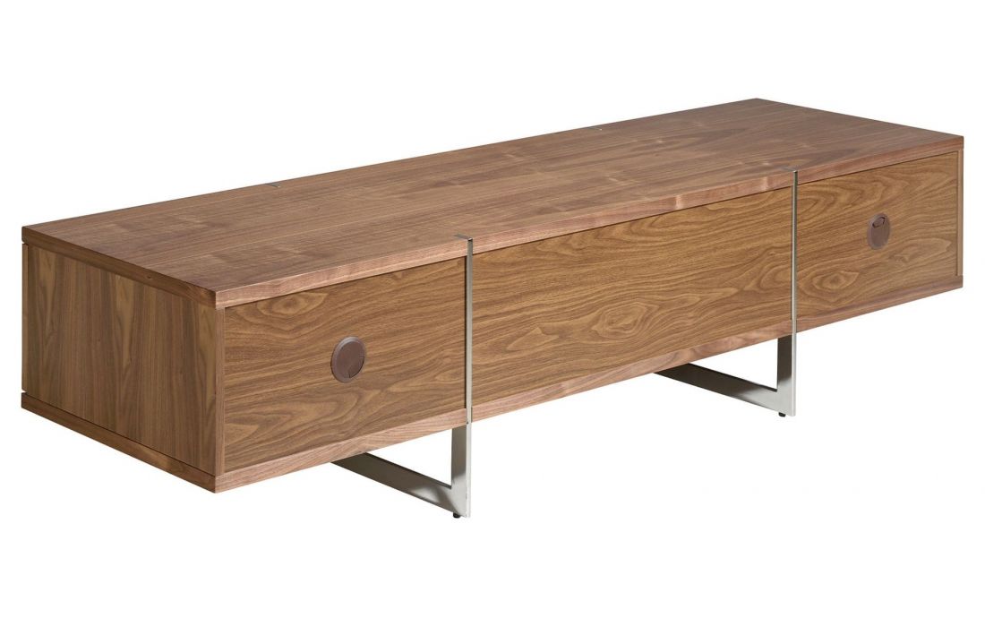 Armário de TV de design moderno com estrutura de madeira venificada em nogueira natural e pernas de aço inoxidável cromadas originais. Seu detalhe original de aço inoxidável cromado traz o toque ideal de estilo para sua sala de estar.Destinatário :
