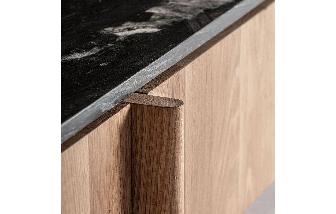 Esta base TV de estilo contemporâneo, feito de madeira de carvalho em marrom claro, combinado com mármore preto, este móvel acrescenta um toque moderno e sofisticado à sua sala de estar.Destinatário :