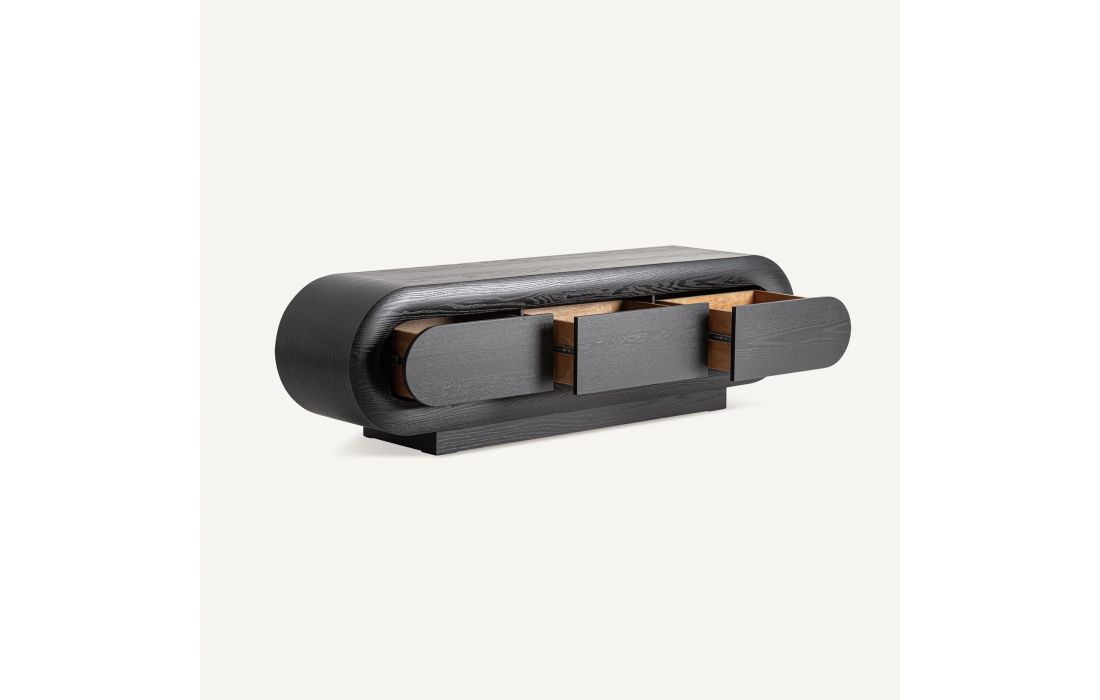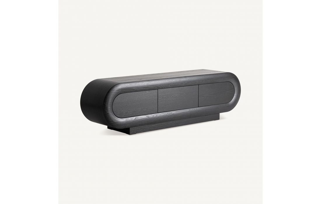 Esa base TV combina estética art déco e design minimalista. Feito de carvalho em preto, sua silhueta oval e linhas limpas trazem serenidade visual. Uma peça de sofisticada e equilibrada que traz ordem e personalidade para a sala de estar.Destinatário :