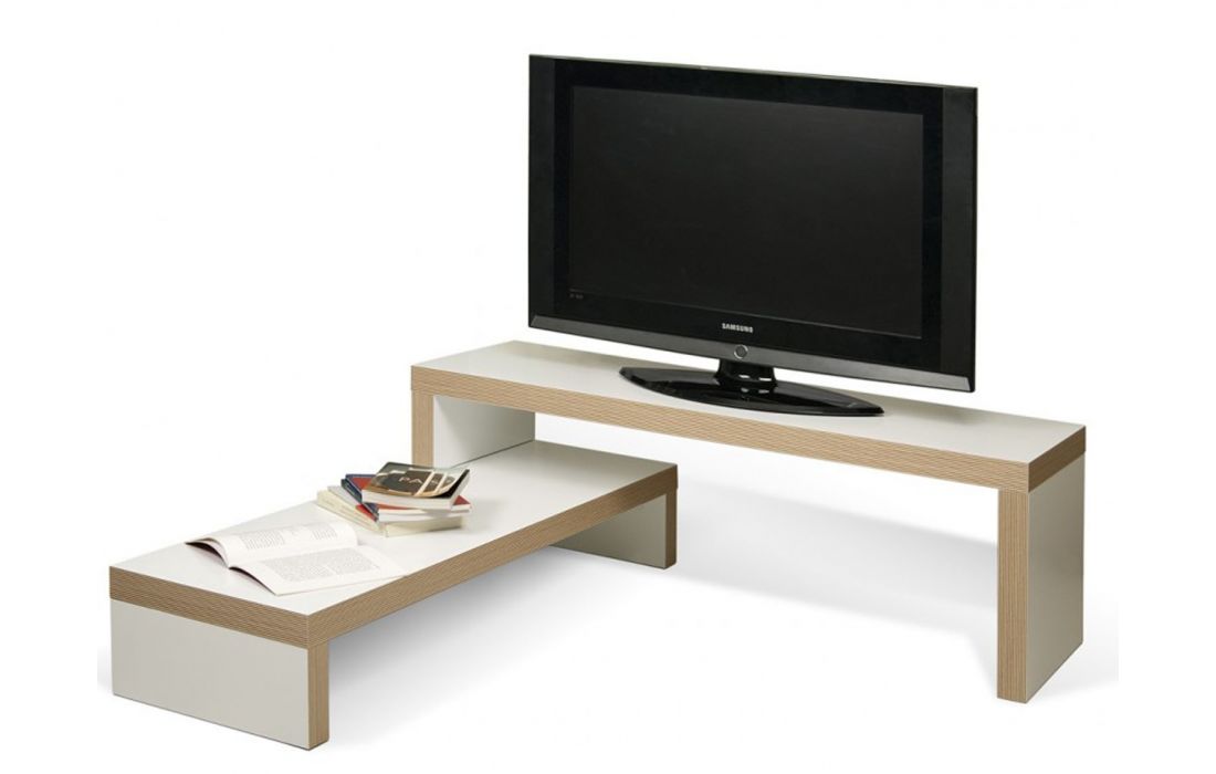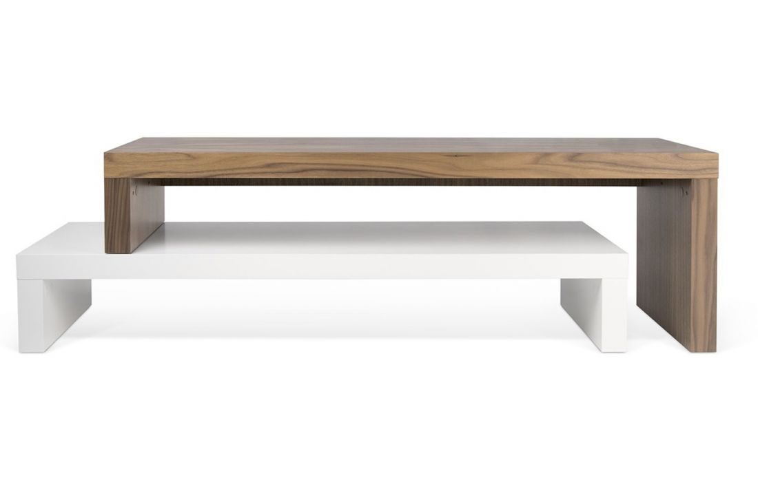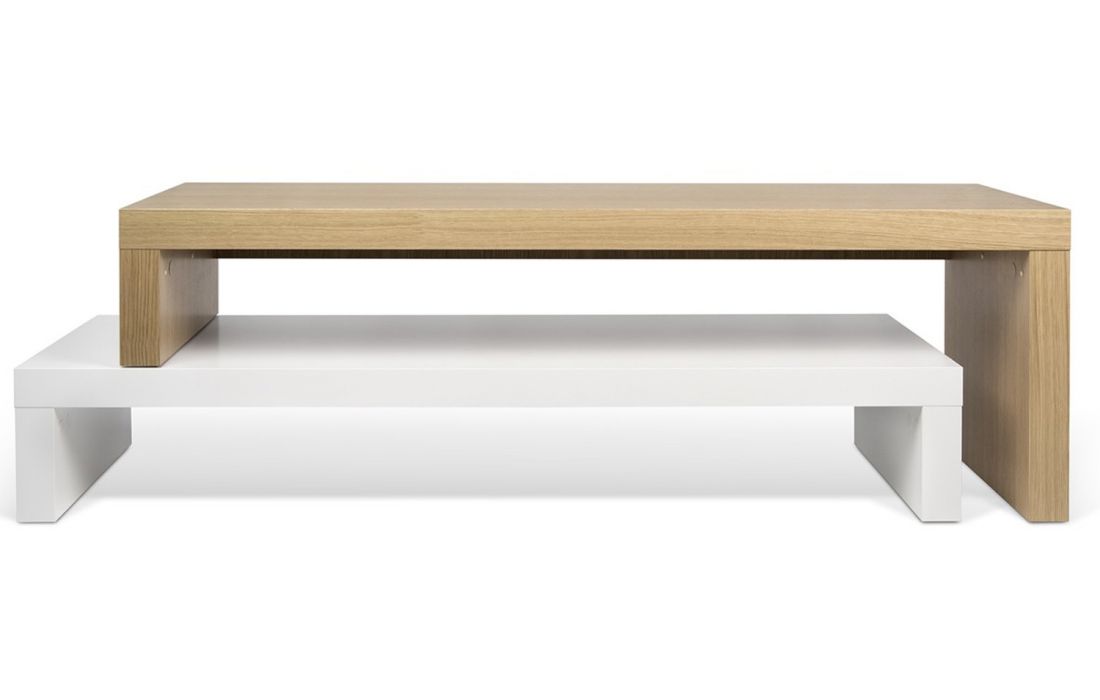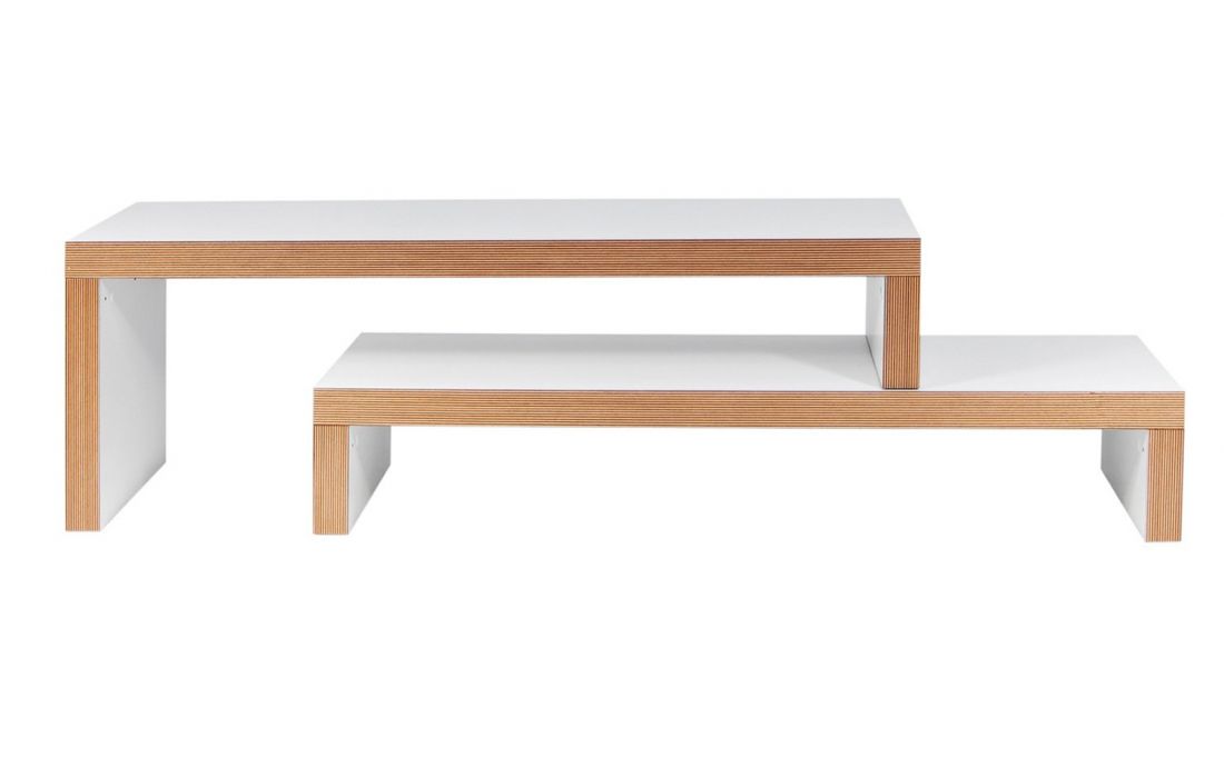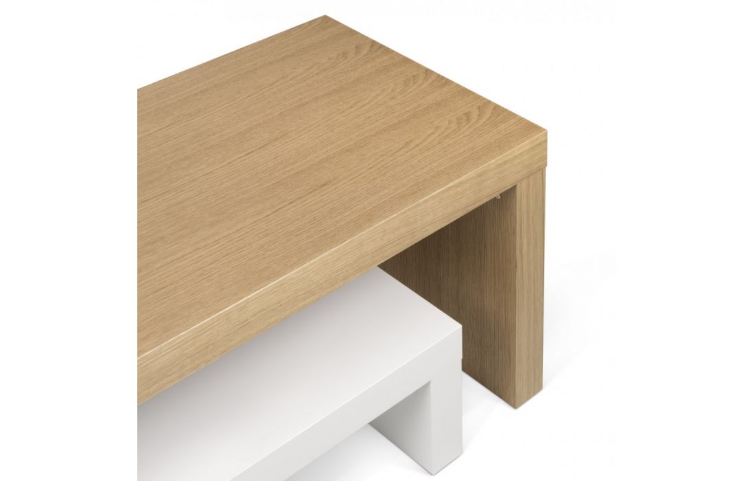 A dinâmica dos dois níveis permite ajustar a parte superior, fazendo-a deslizar na horizontal, ou na perpendicular, formando um canto ou contornando outro móvel, como um sofá.