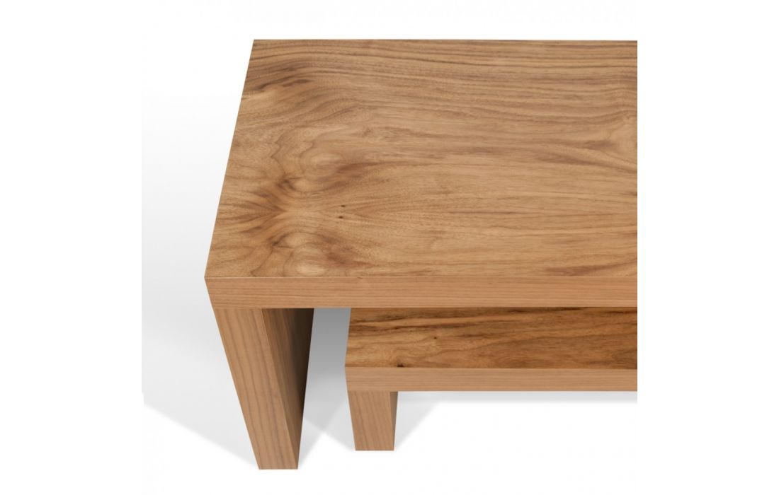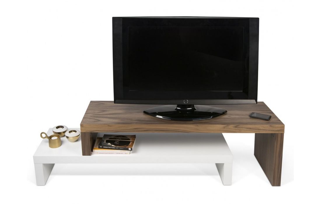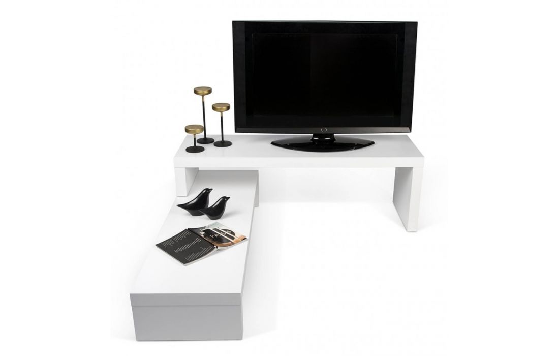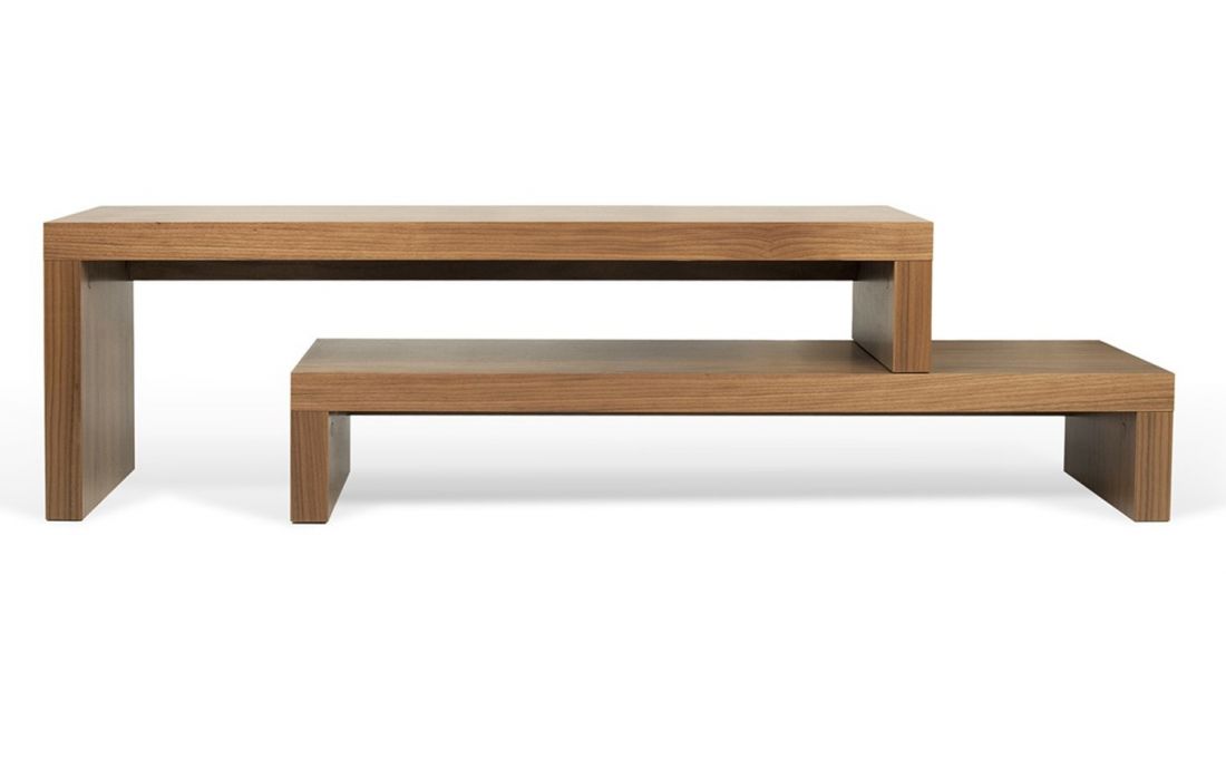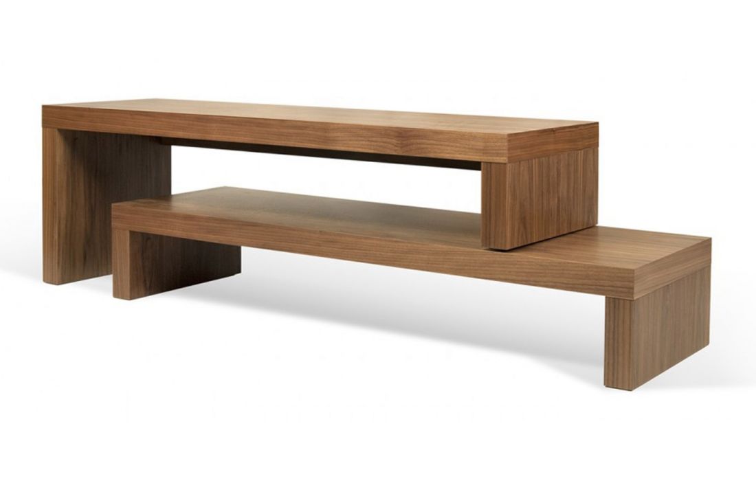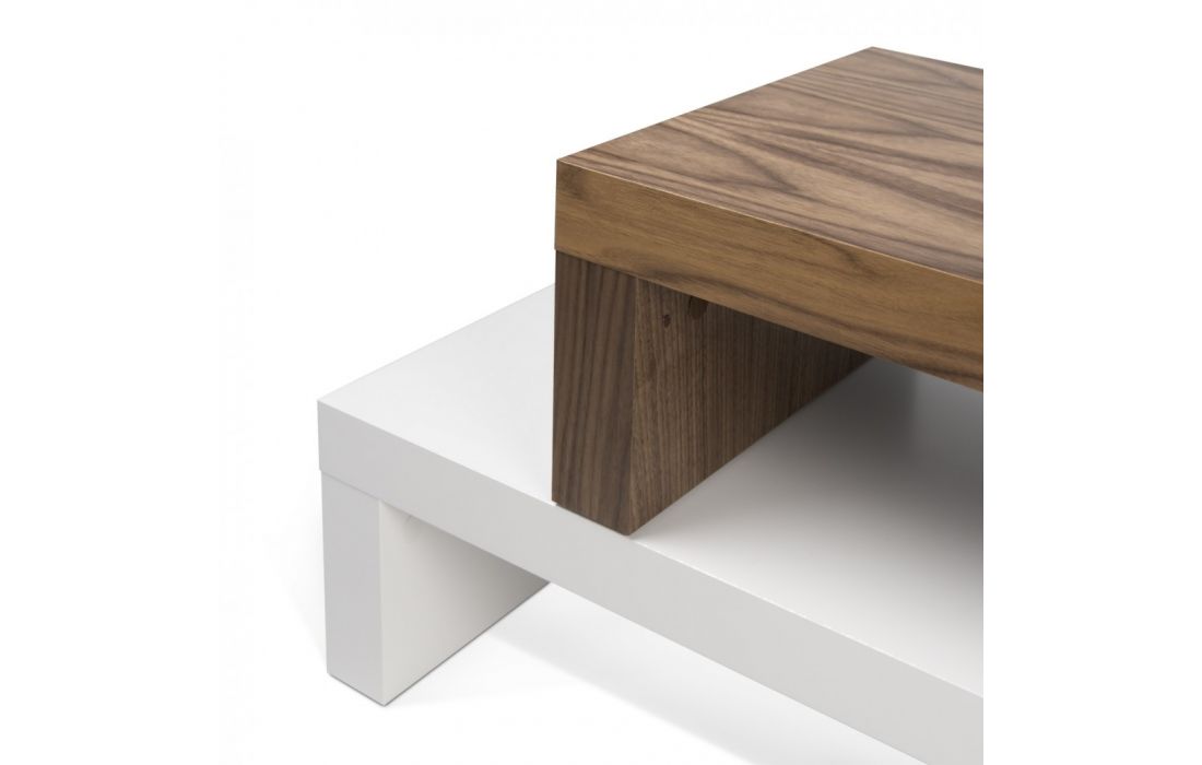 A dinâmica dos dois níveis permite ajustar a parte superior, fazendo-a deslizar na horizontal, ou na perpendicular, formando um canto ou contornando outro móvel, como um sofá.