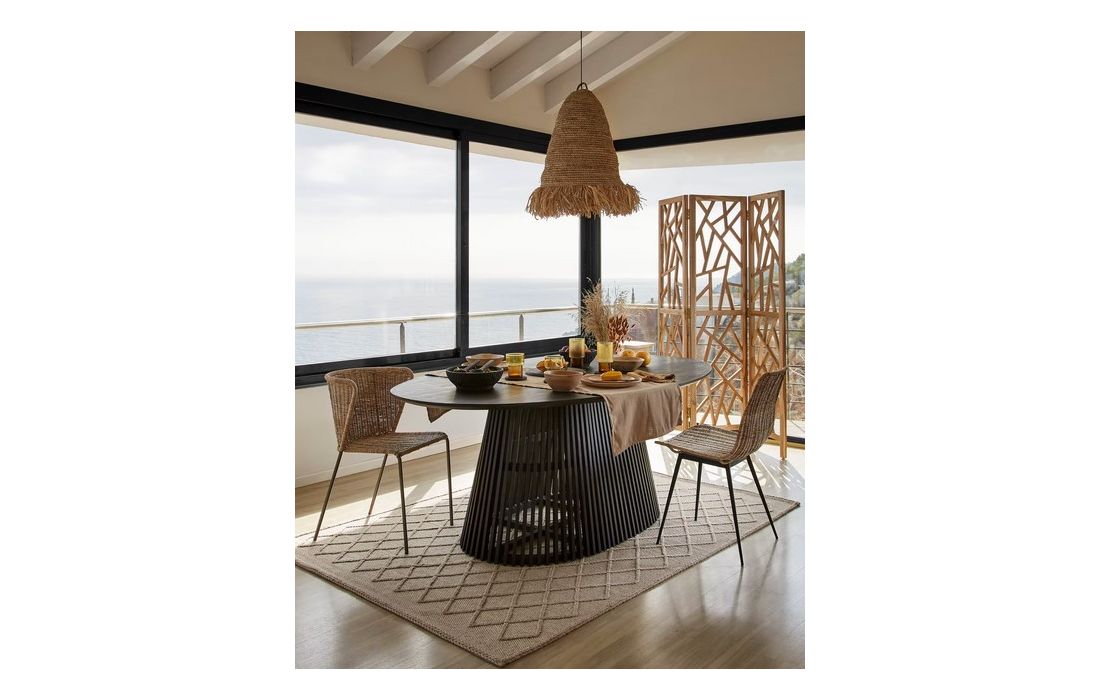 Biombo feito em ratan com malha de ratan entrançado na parte frontal. O ratan é curvado à mão para fazer a estrutura e trançado artesanalmenteDimensões em cmC 180 P 4 A 180Prazo de Entrega10 a 15 dias