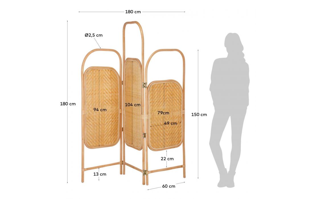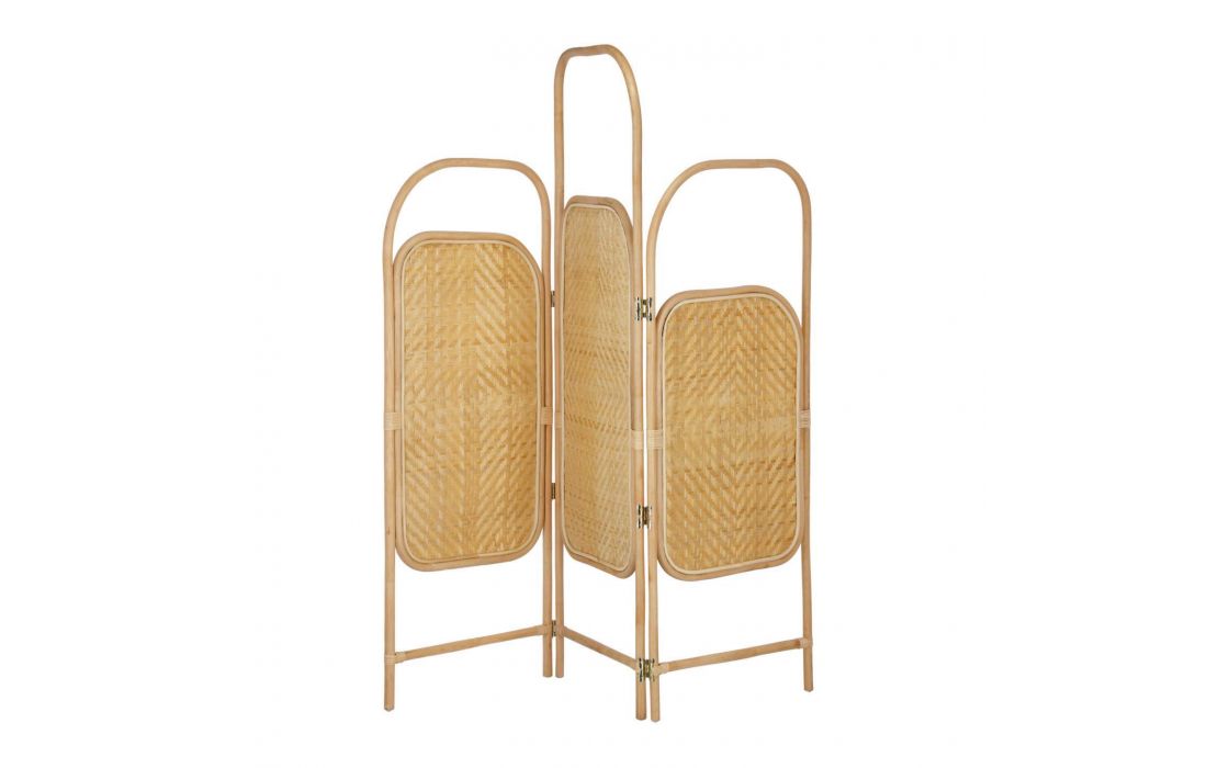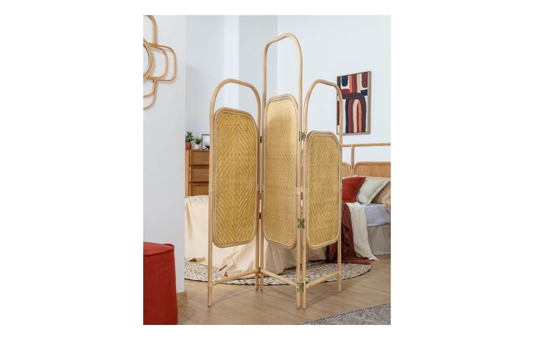 Biombo feito em ratan com espelho. O ratan é curvado à mão para fazer a estrutura e trançado artesanalmente. Dimensões em cmC 150 P 4 A 180Prazo de Entrega10 a 15 dias