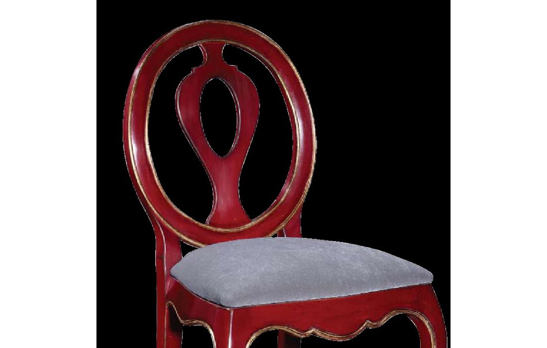 Cadeira com estrutura em forma de medalhão, design provençal e pormenor em folha de ouro com possibilidade de vários acabamentos e revestimentos.