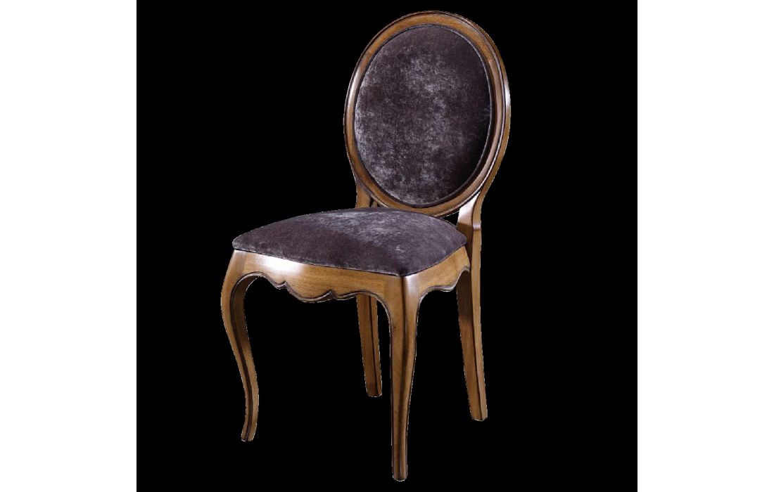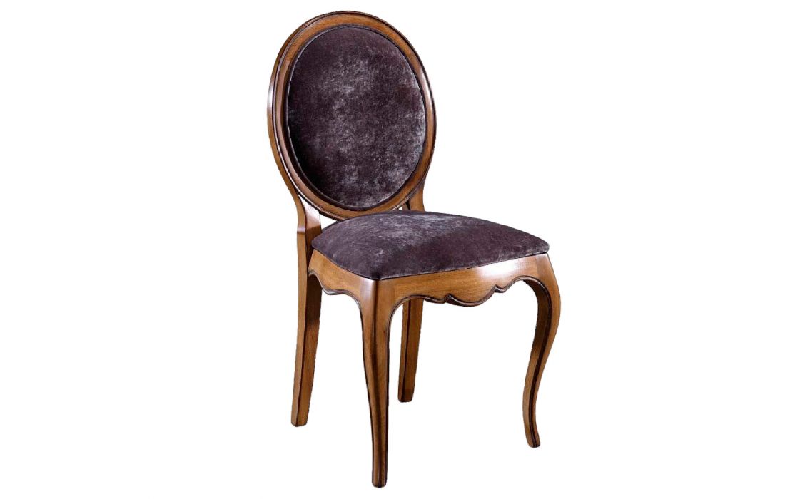 Cadeira com costa e assento em tecido, estrutura em madeira, design provençal com possibilidade de vários acabamentos e revestimentos.