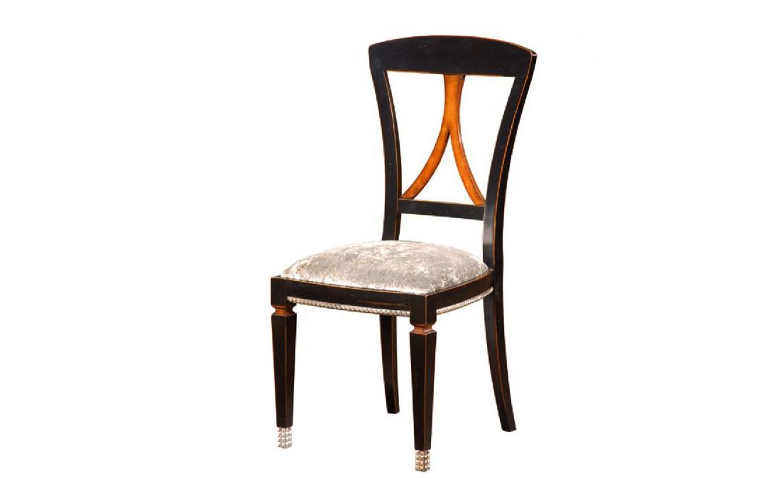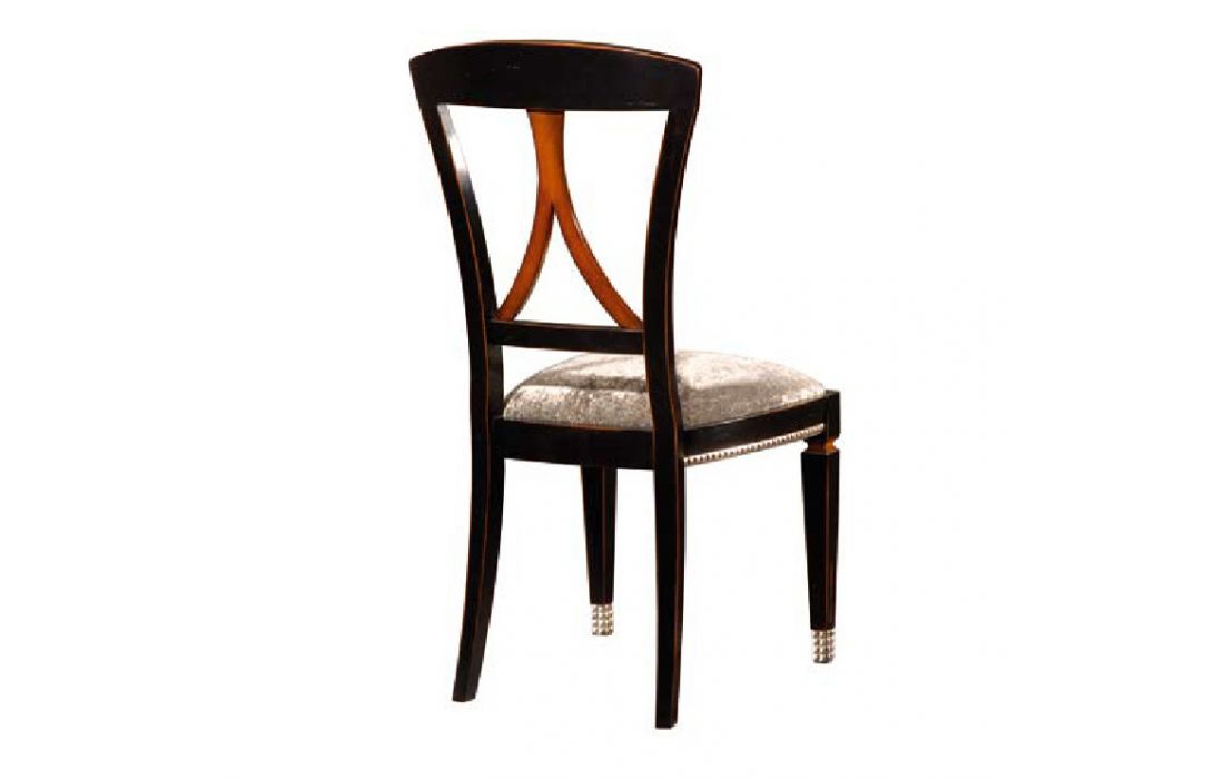 Cadeira com estrutura em madeira, assento em tecido, design provençal e pormenor em folha de prata com possibilidade de vários acabamentos e revestimentos.