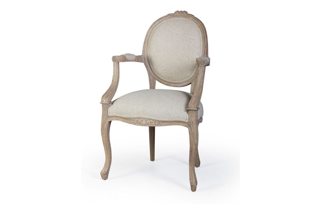 Cadeirão clássico, estrutura em madeira, assento e costa revestido em tecido.