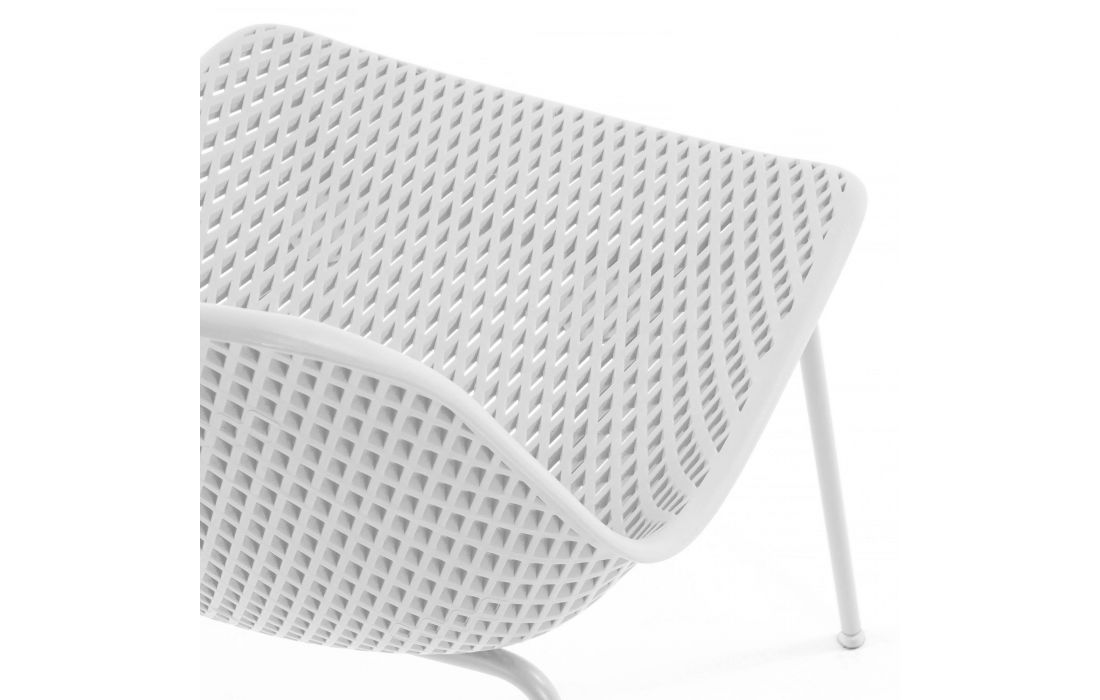 Cadeira de plástico reciclável cor branca com estrutura em metal. É uma cadeira versátil, ideal para áreas tão diferentes quanto sua cozinha, sala de jantar ou escritório. Uma cadeira com infinitas possibilidades para o seu interior.