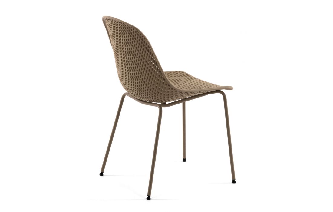 Cadeira de plástico reciclável cor bege com estrutura em metal. É uma cadeira versátil, ideal para áreas tão diferentes quanto sua cozinha, sala de jantar ou escritório. Uma cadeira com infinitas possibilidades para o seu interior.