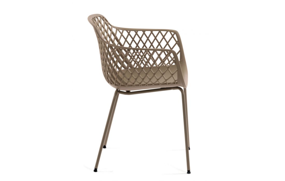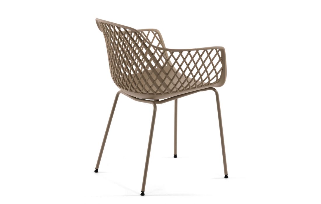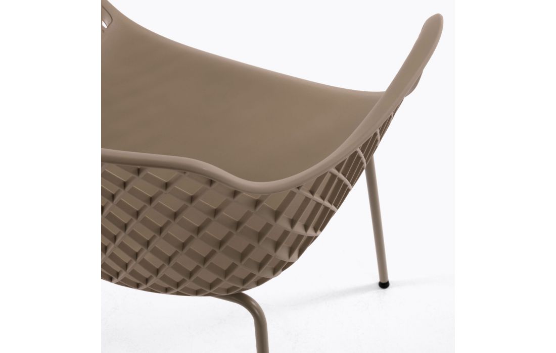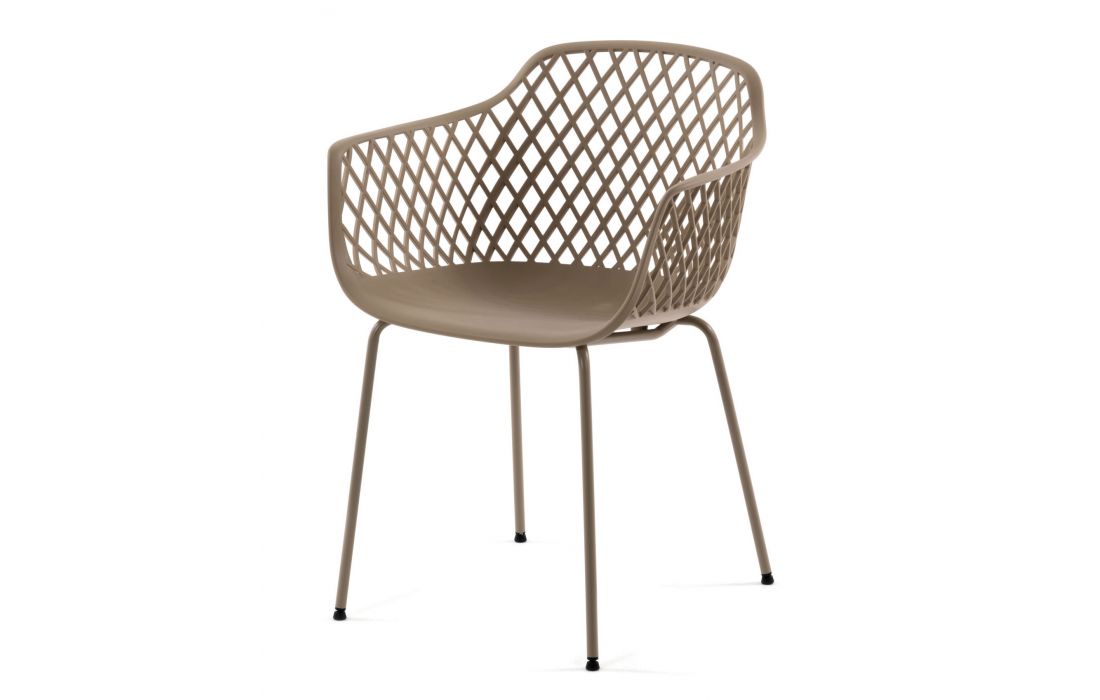 Cadeirão de plástico reciclável cor bege com estrutura em metal. É um cadeirão versátil, ideal para áreas comuns, como sua cozinha ou sala de jantar, como sua zona privada, como sua área de estudo ou leitura. Uma cadeirão com infinitas possibilidades para o seu interior.
