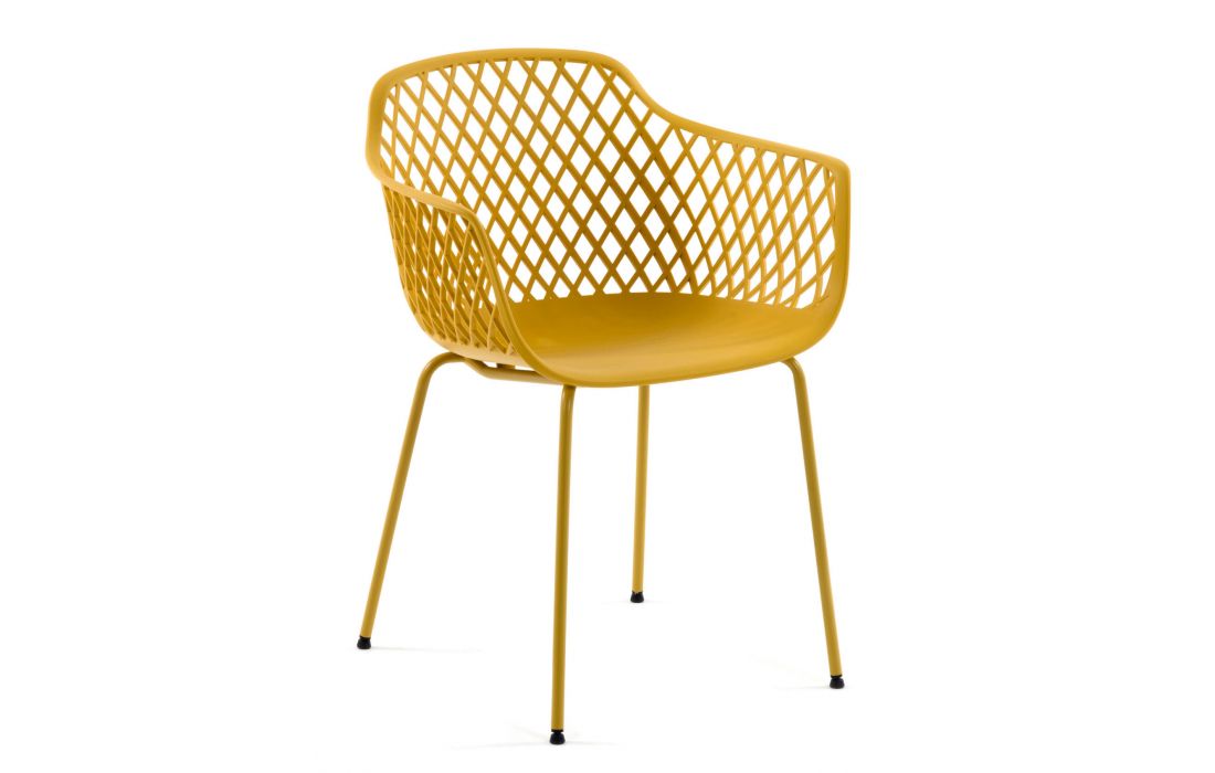 Cadeirão de plástico reciclável cor amarelo com estrutura em metal. É um cadeirão versátil, ideal para áreas comuns, como sua cozinha ou sala de jantar, como sua zona privada, como sua área de estudo ou leitura. Uma cadeirão com infinitas possibilidades para o seu interior.