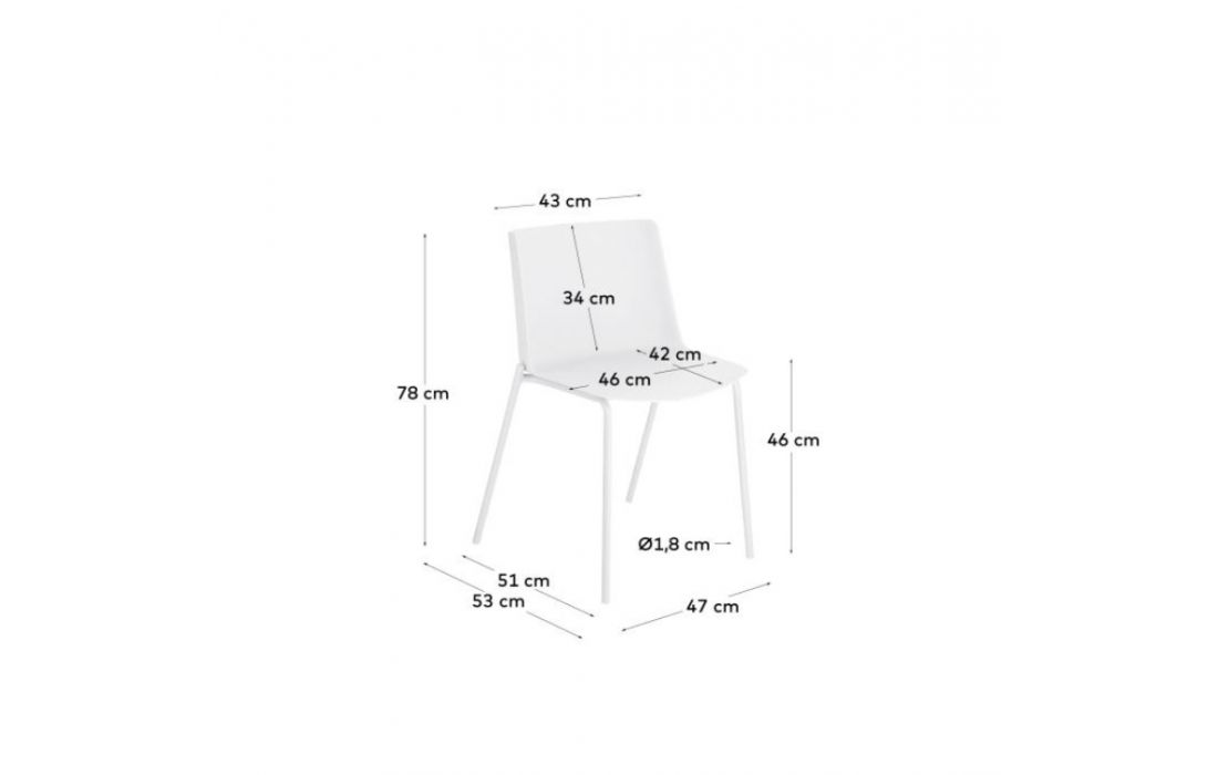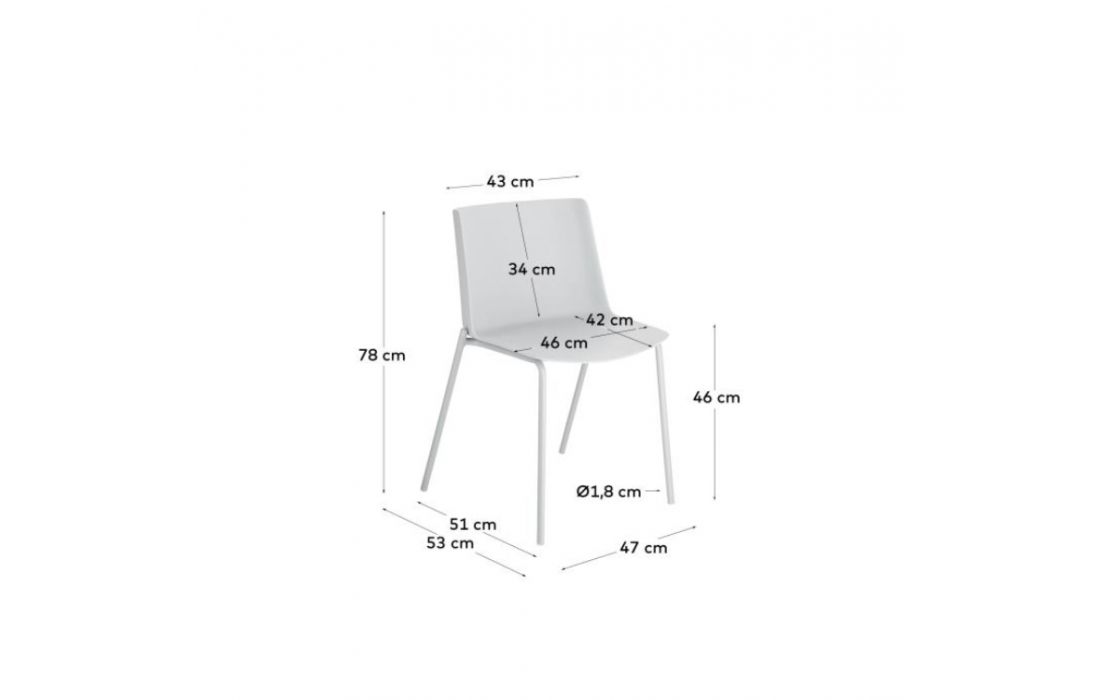 Especificações do Produto Polipropileno / Aço Não fazemos qualquer alteração ao produto Este produto necessita de montagem Manutenção e Limpeza Limpar com um pano seco Para tirar manchas deve usar um pano húmido e de seguida passar um pano seco Legenda de medidas (C) Comprimento (P) Profundidade(A) Altura