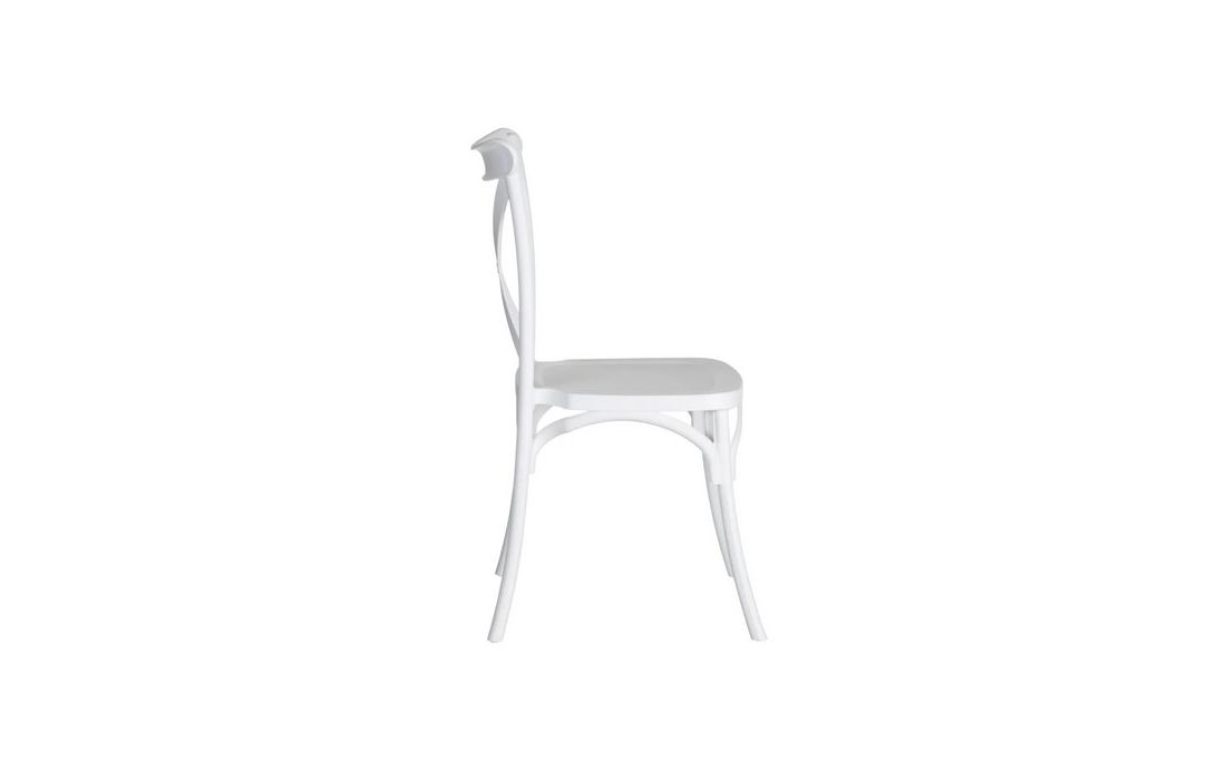 Cadeira com estrutura e assento em polipropileno de cor branco e costa em policarbonato trasnparente.Dimensões em cmC 50 P 42 A 85Prazo de Entrega10 a 20 dias