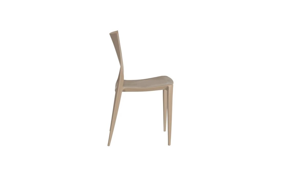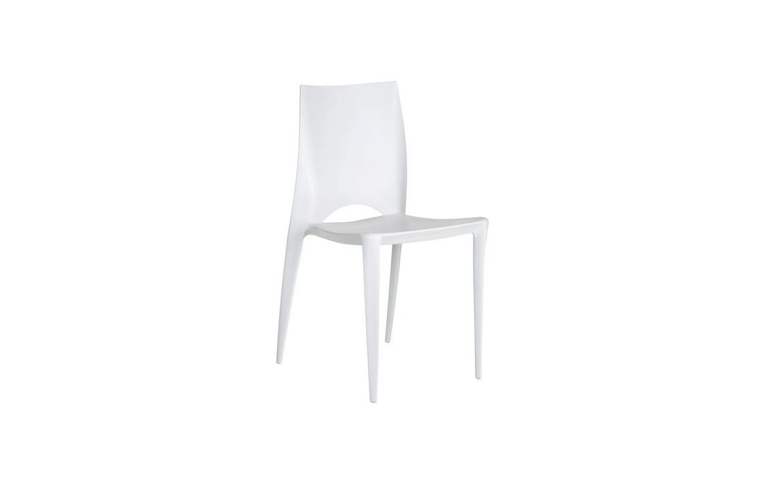 Cadeira com estrutura em polipropíleno, assento em pele sintética de cor branco, preto ou vermelho e pés em madeira maciça de faia.Dimensões em cmC 42 P 48,5 A 82,5Prazo de Entrega10 a 20 dias