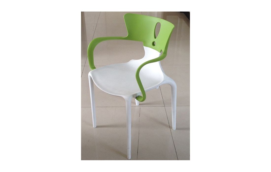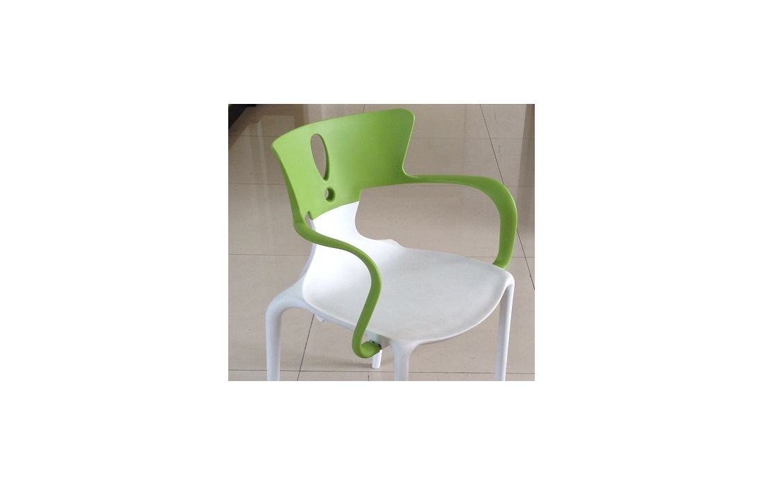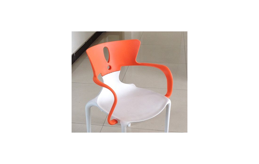 Cadeirão com estrutura em polipropíleno branco e laranja ou branco e verde.
