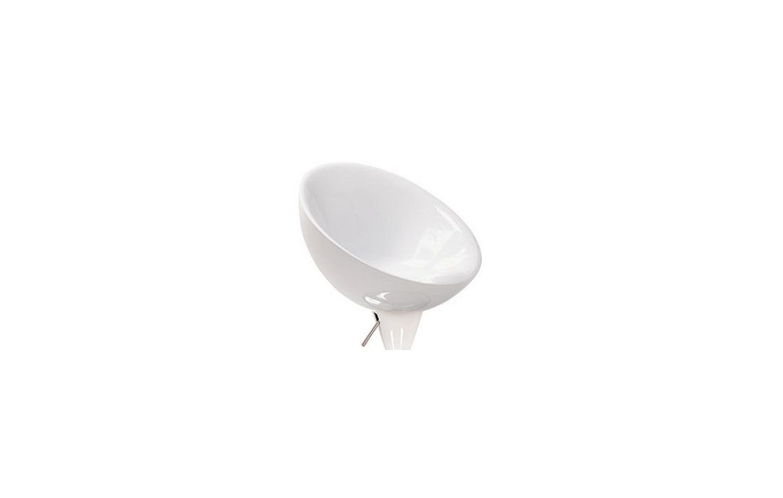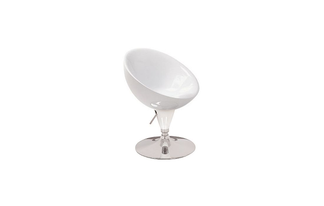 Cadeirão com estrutura em ABS de cor branca e base cromada.