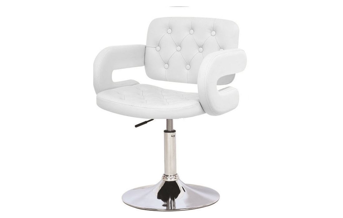 Cadeirão giratório com estrutura em metal cromado, assento e costa em pele sintética de cor branco ou preto.