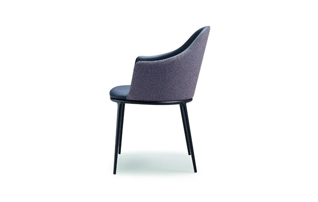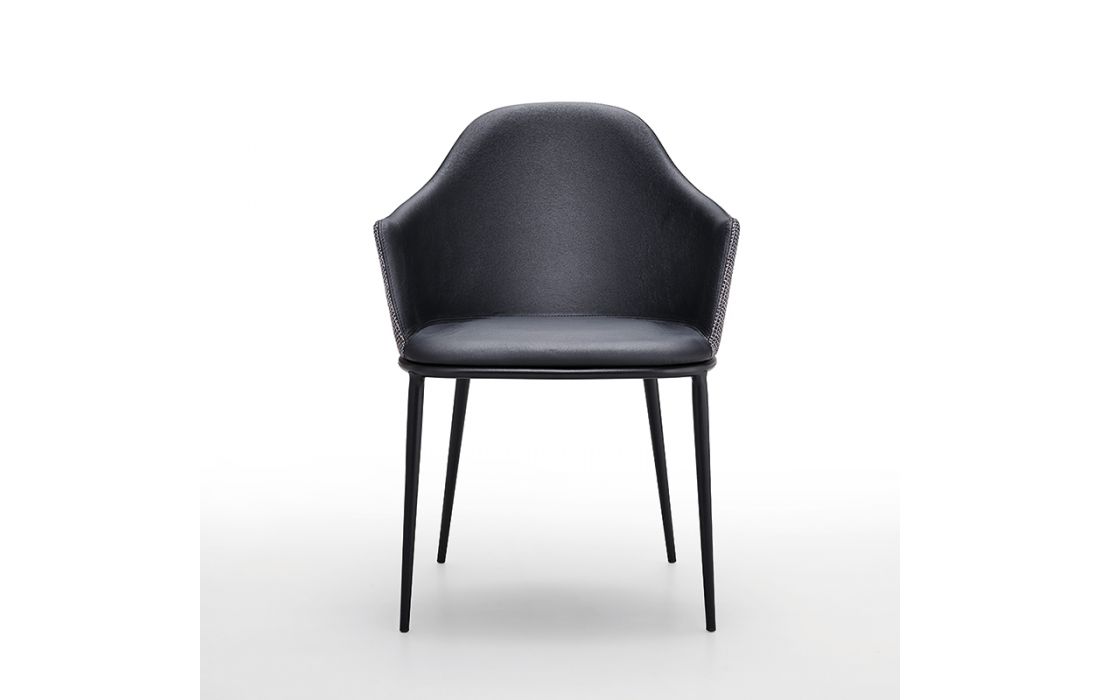 Cadeirão em pele sintética e costa exterior em tecido, com estrutura em metal.Destinatário :