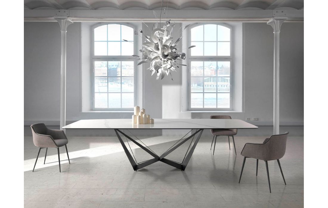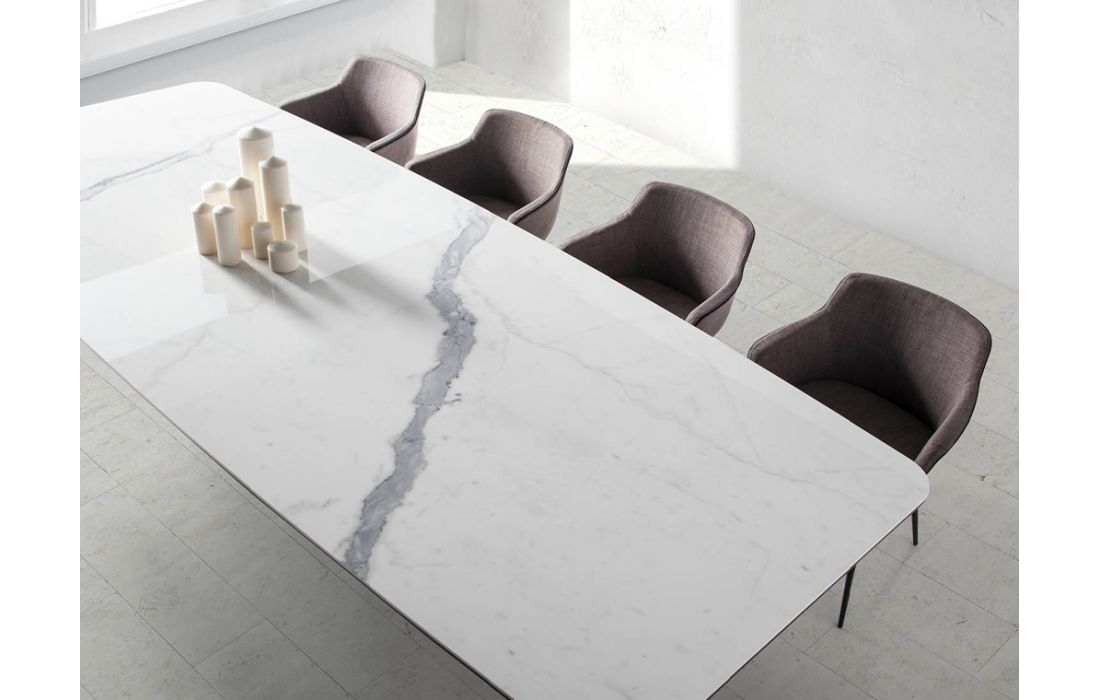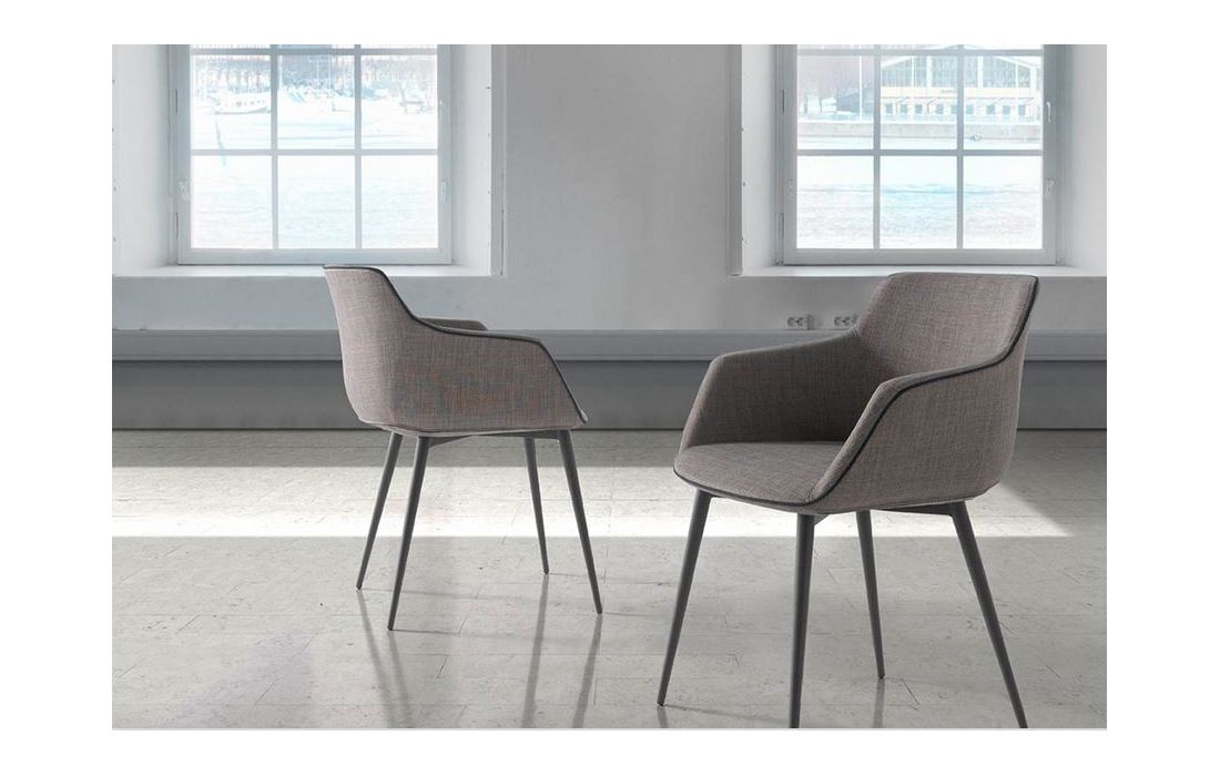 Poltrona de jantar com braços em tecido com debrum preto e estrutura em aço pintado de pretoDestinatário :