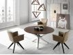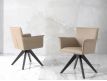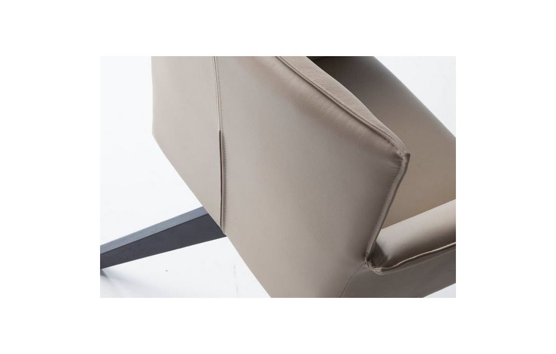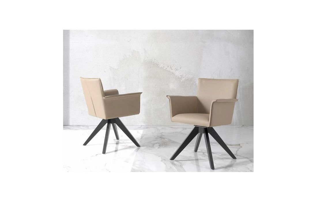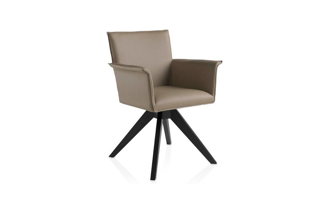 Cadeirão giratória estofada em couro sintético e pés em madeira de freixo pintadas na cor wengué.
