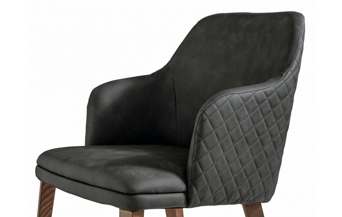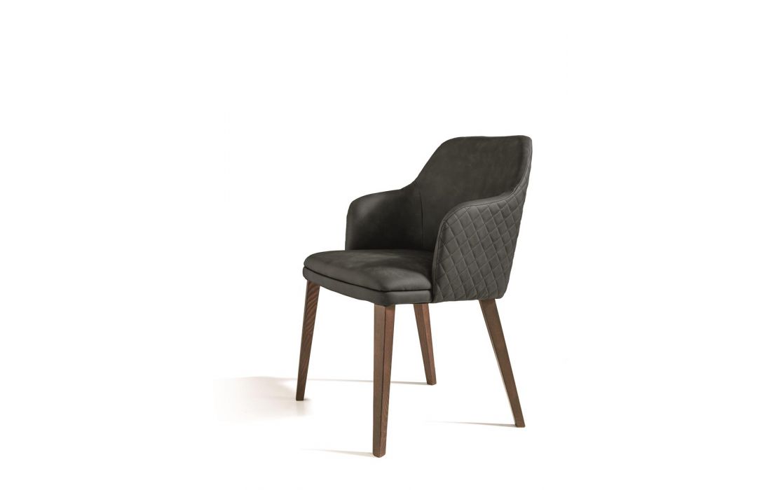 Cadeirão com pernas em madeira maçica de freixo e assento em tecido, tecido aveludado, pele ou ecopele