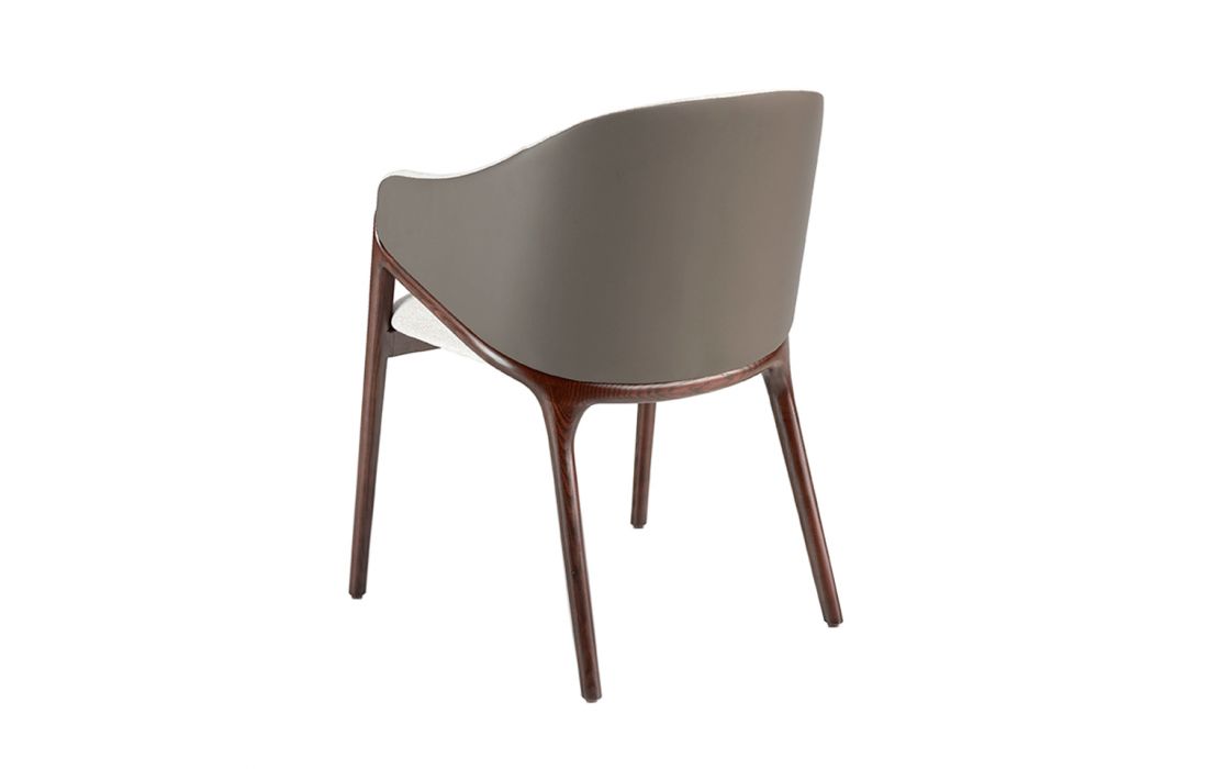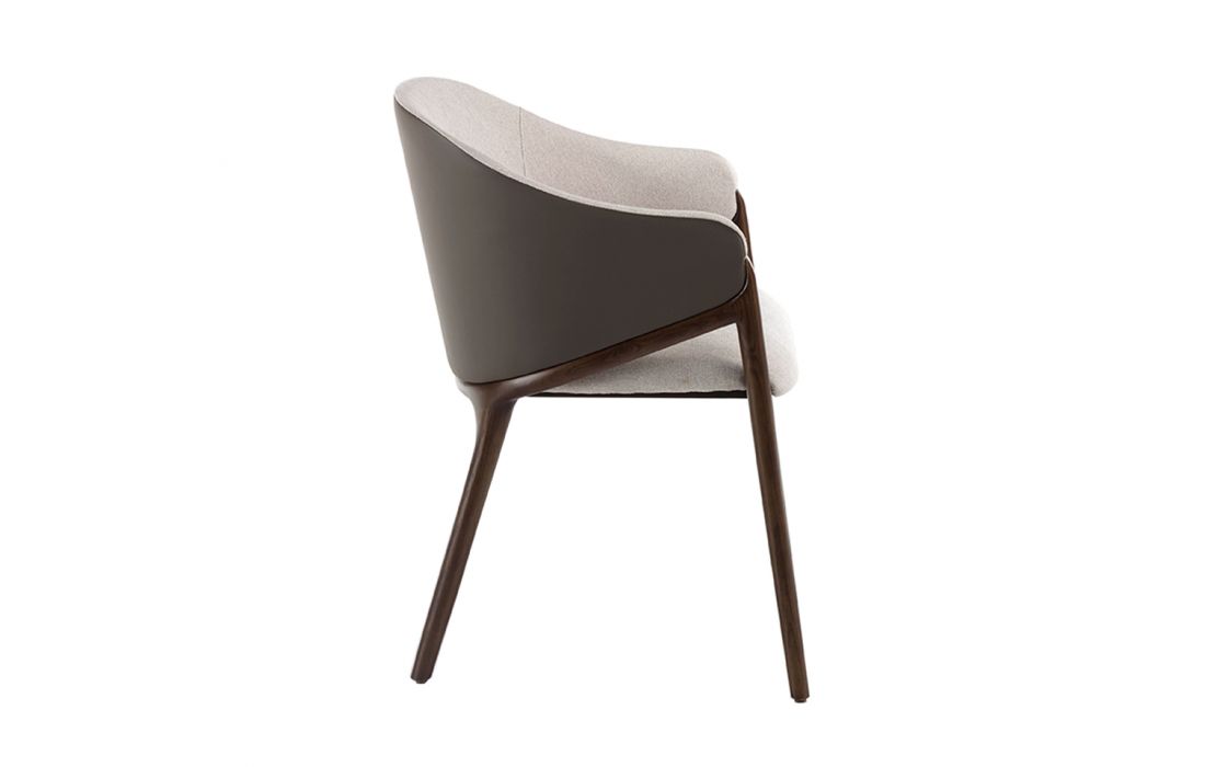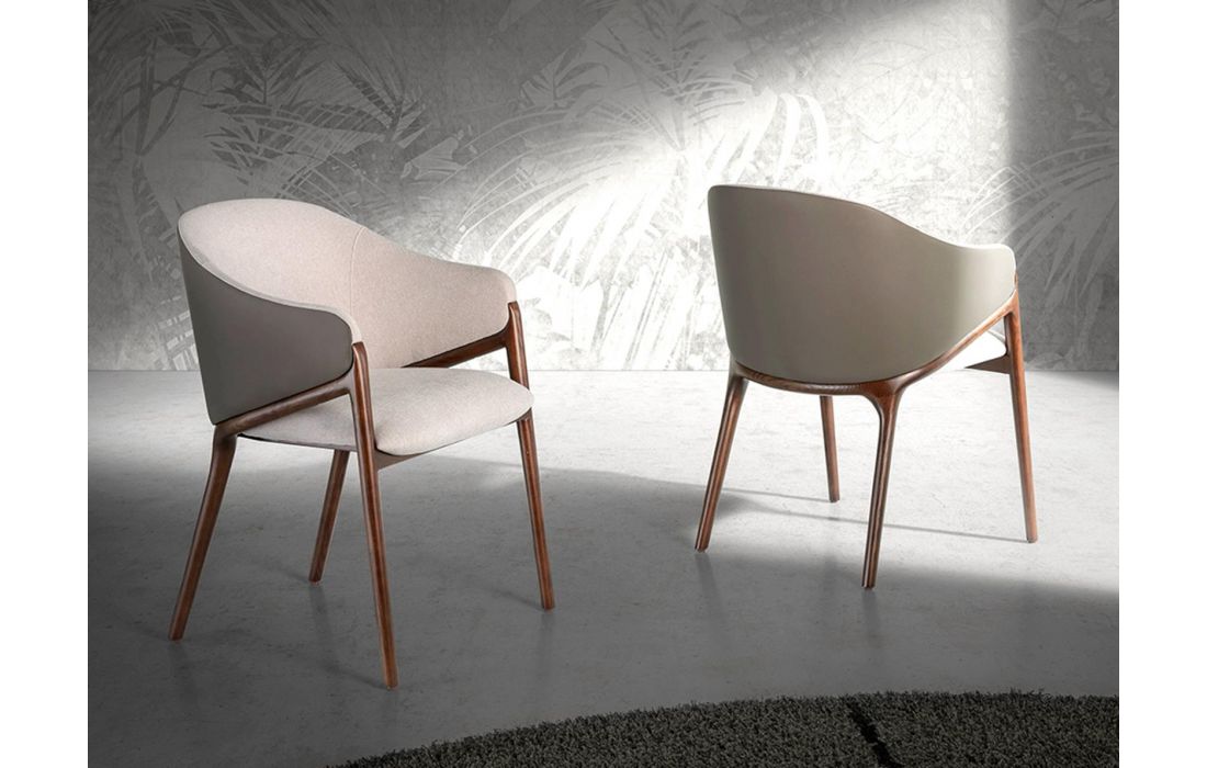 Cadeirão estofado em tecido e imitação de pele com pés em madeira maciça de freixo pintado em nogueiraDestinatário :