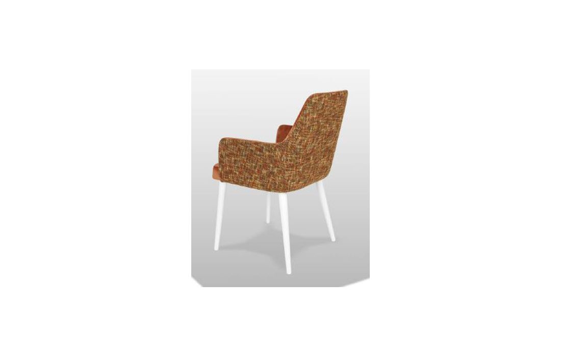 Cadeira c/ braços estofada com pés em madeira maciça de freixo nos vários acabamentos e revestimentos possiveis.