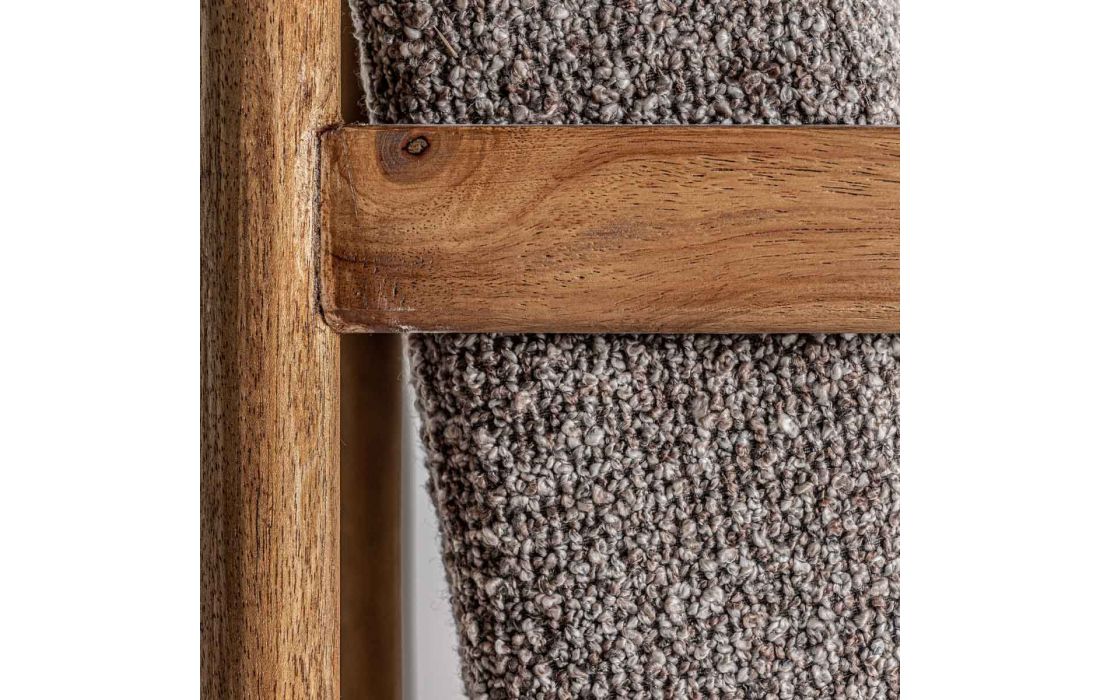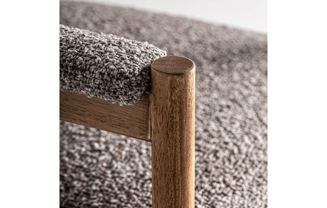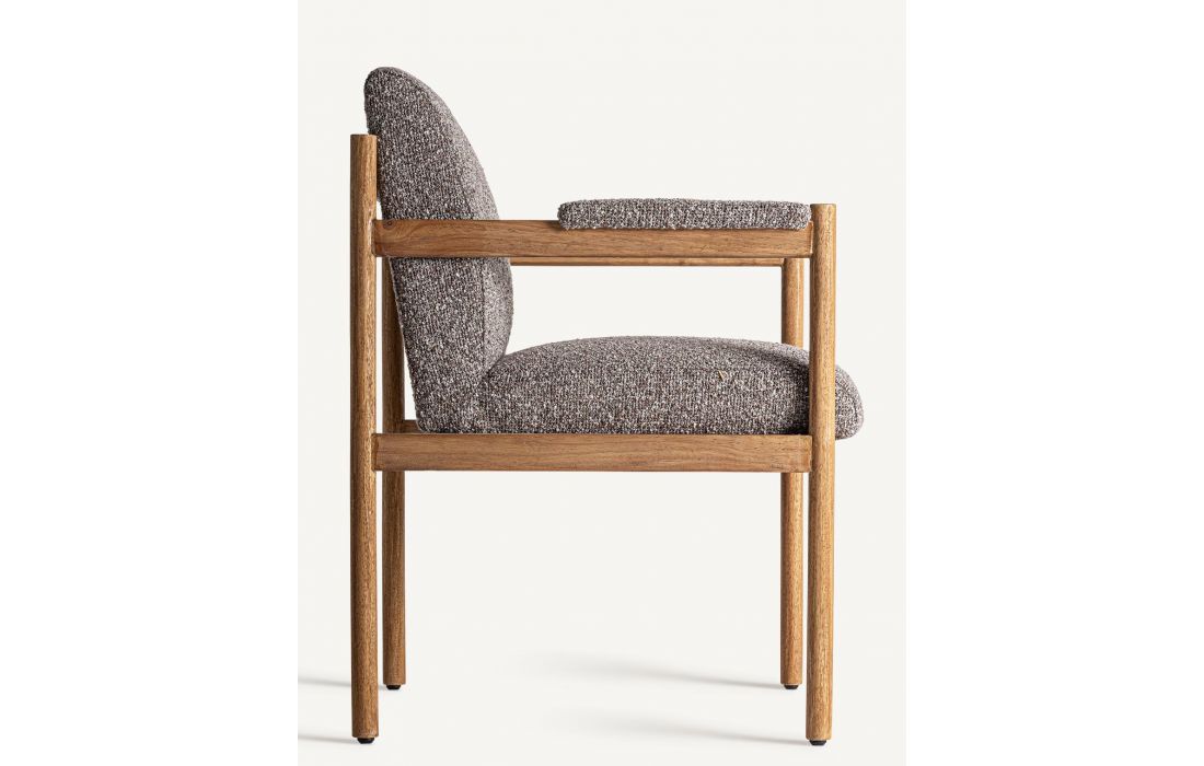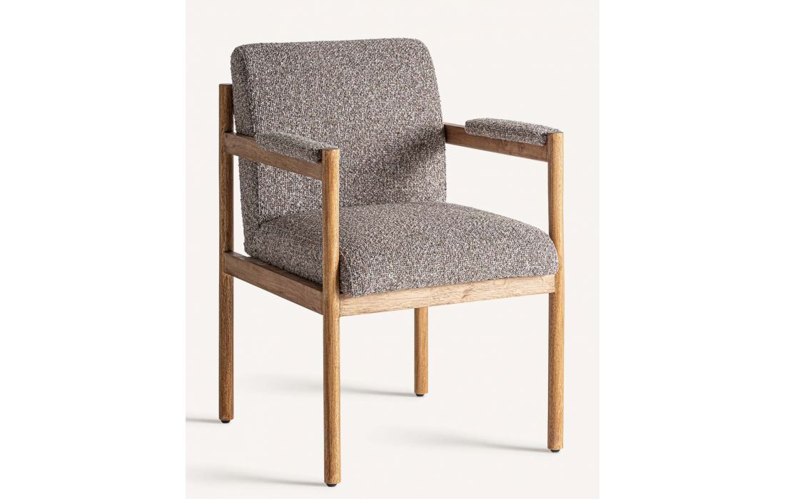 Cadeira de braços com estrutura em madeira de caucho e estofada em tecido poliester