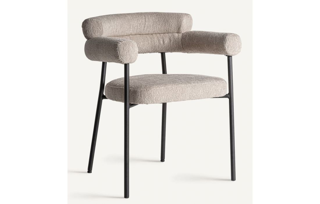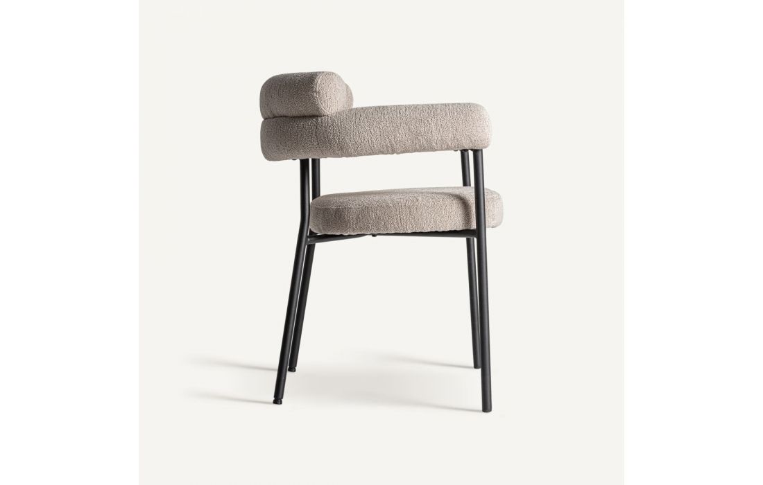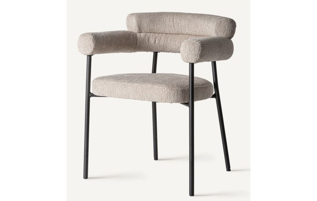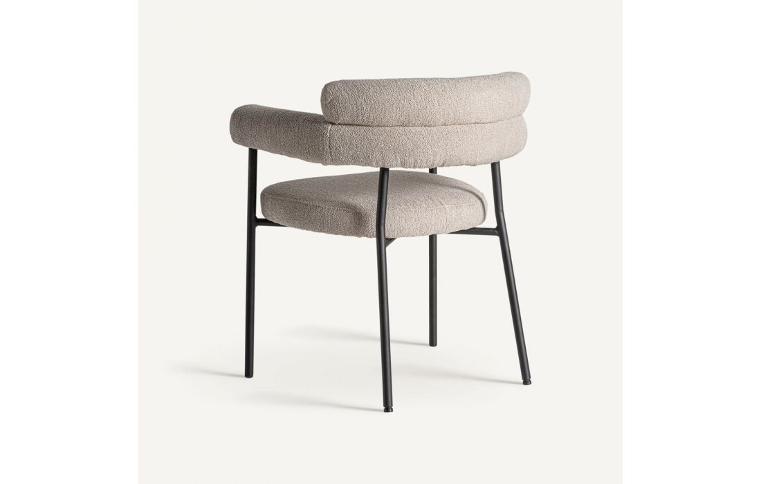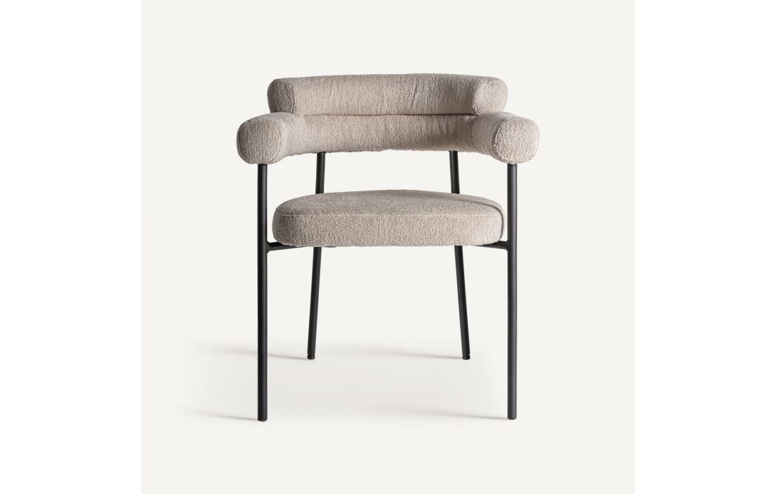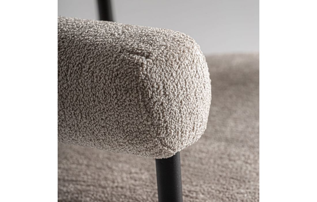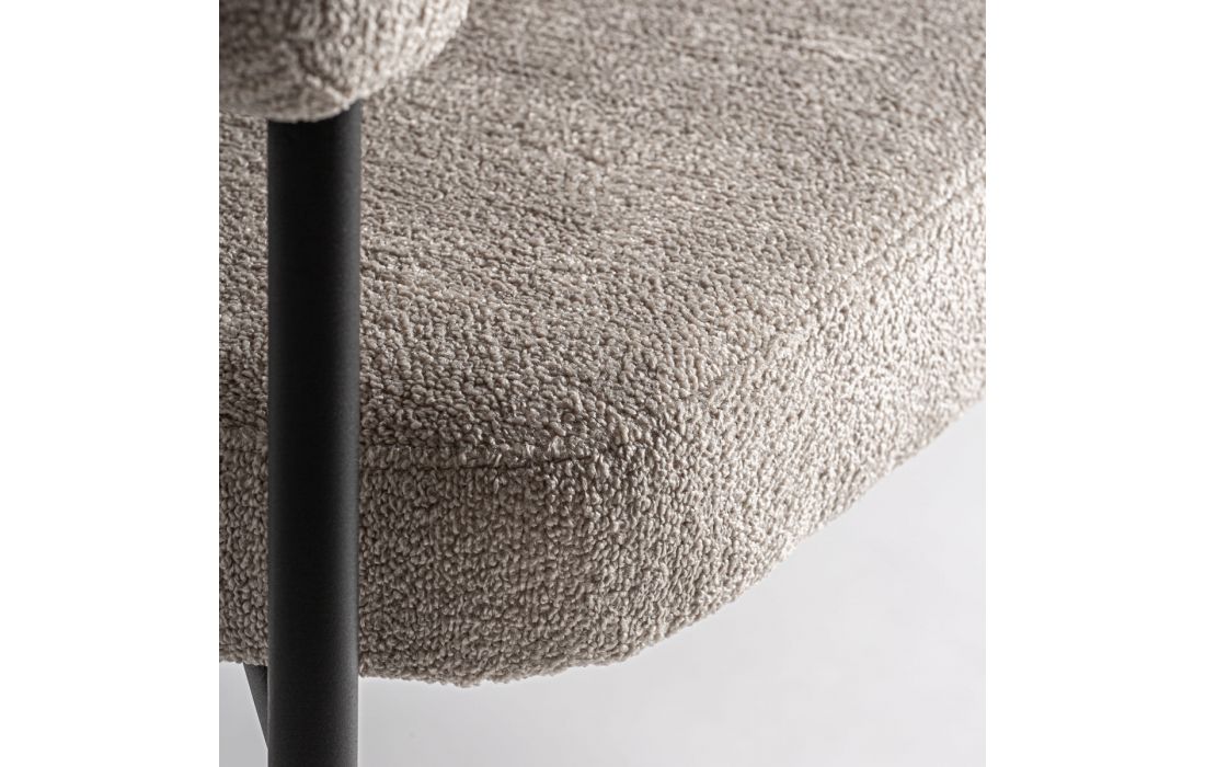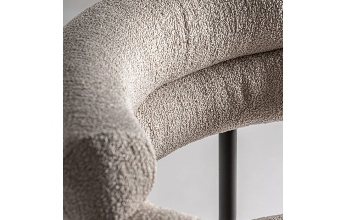 Cadeirão com estrutura em aço e estofo em tecido bouclé.