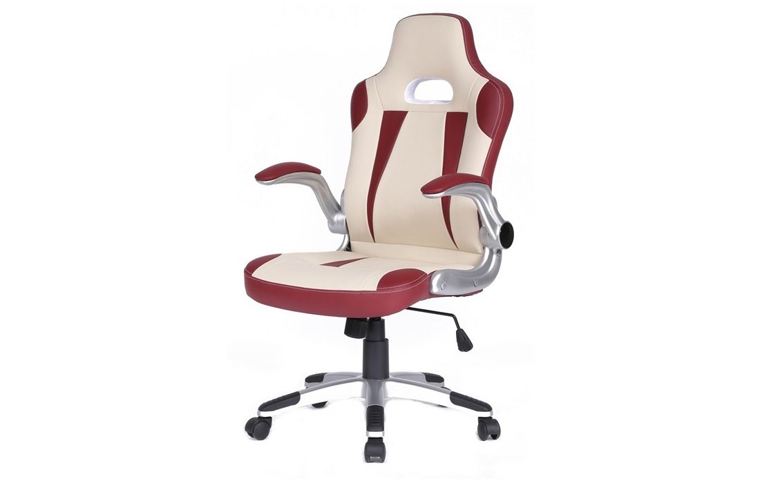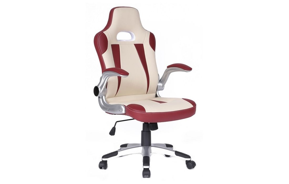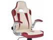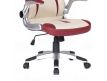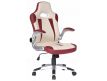 Cadeira giratória de elevação a gás com inclinação e bloqueio, estrutura de metal e estofo em pele sintética e tecido.
