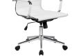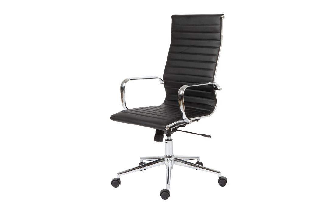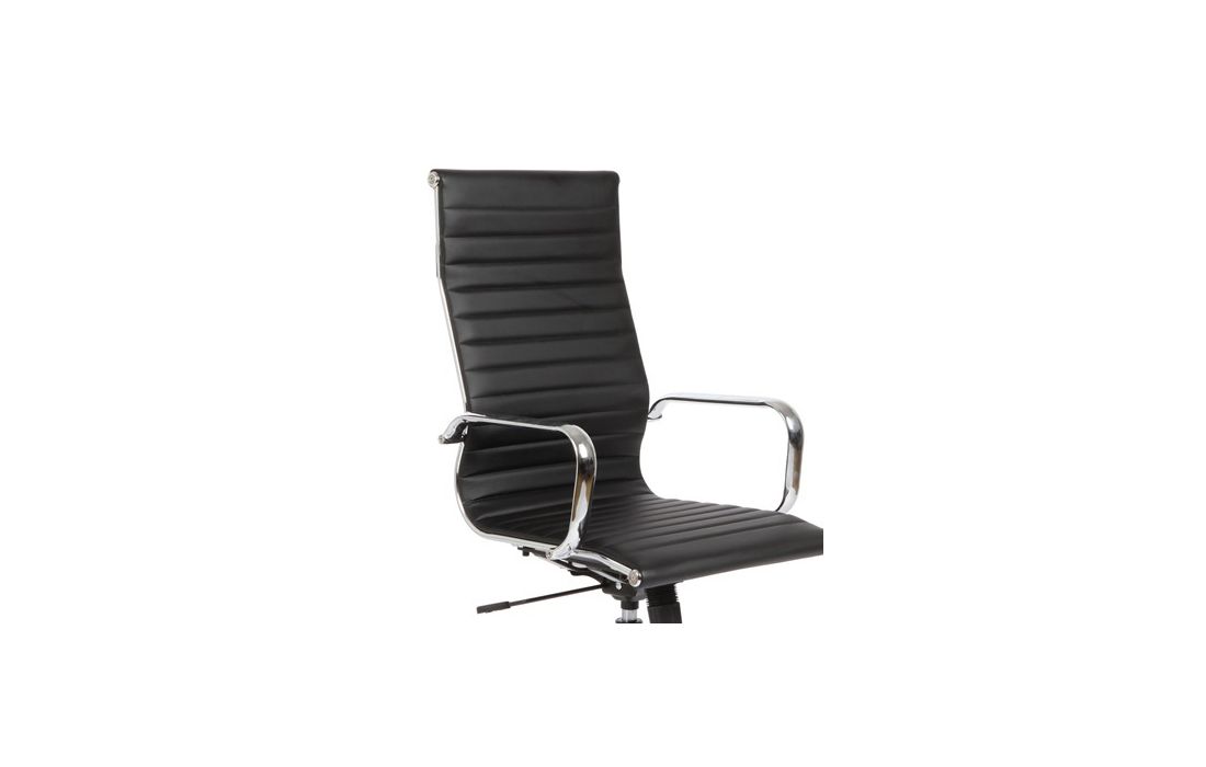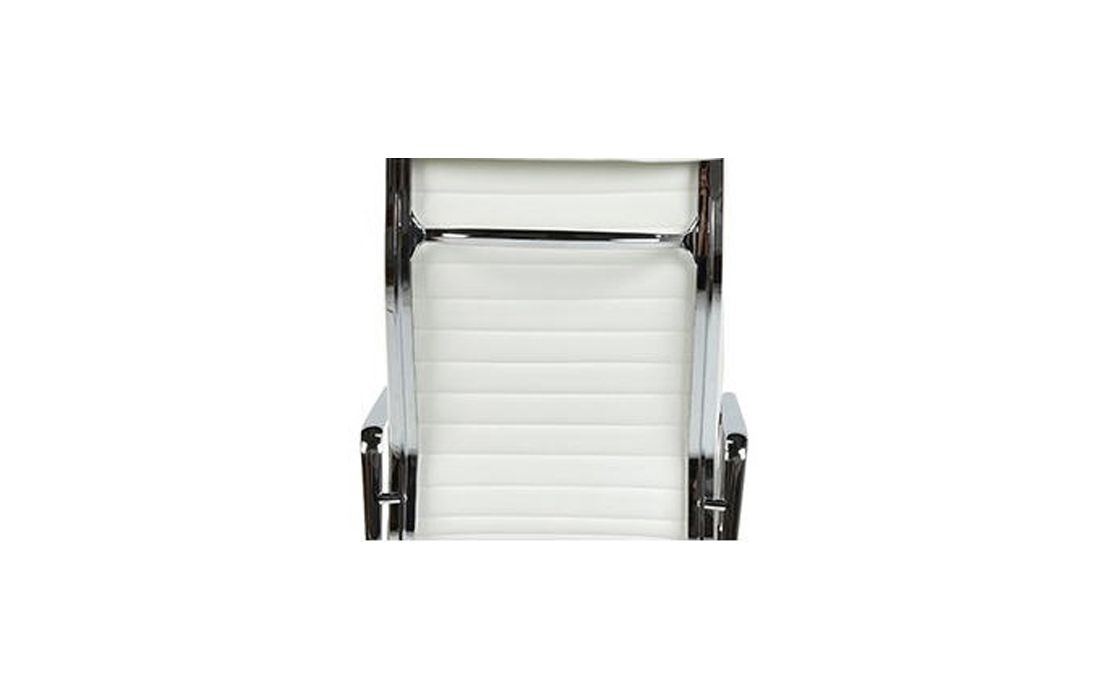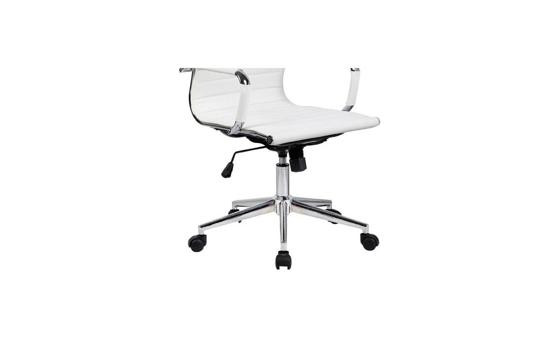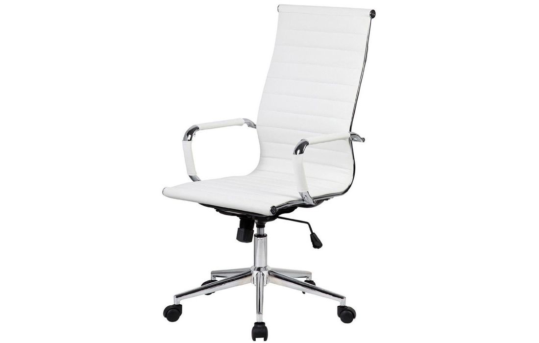 Cadeira giratório de elevação a gás com inclinação e bloqueio, estrutura de metal e estofo em pele sintética nas cores preto e branco.