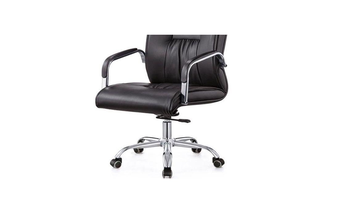 Cadeira com mecanismo geratório de elevação a gás com inclinação e bloqueio, base de metal cromado e estofo em pele sintética cor preta