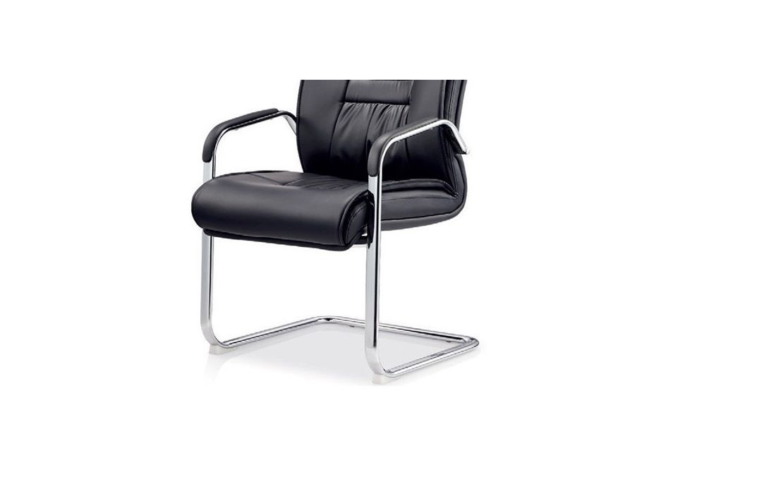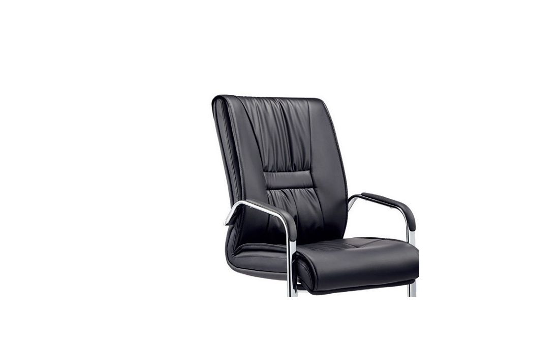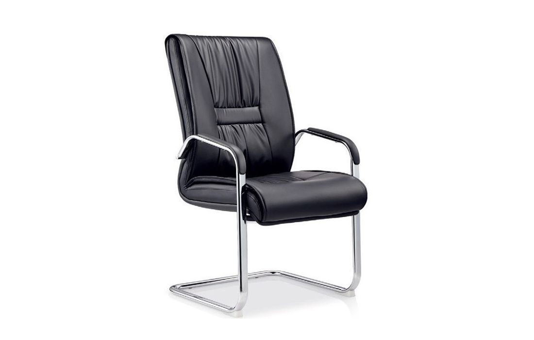 Cadeira com base de metal cromado e estofo em pele sintética cor preta