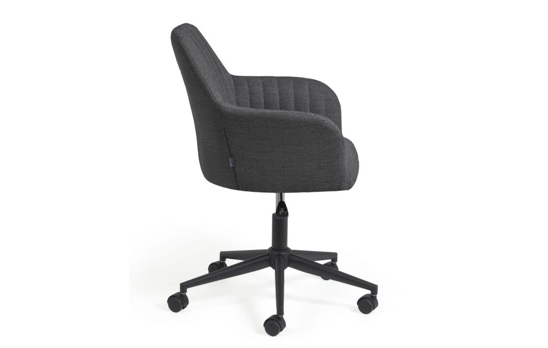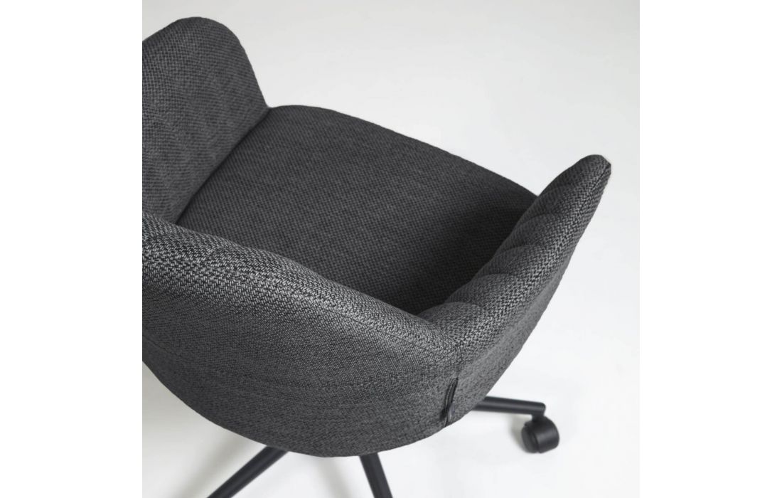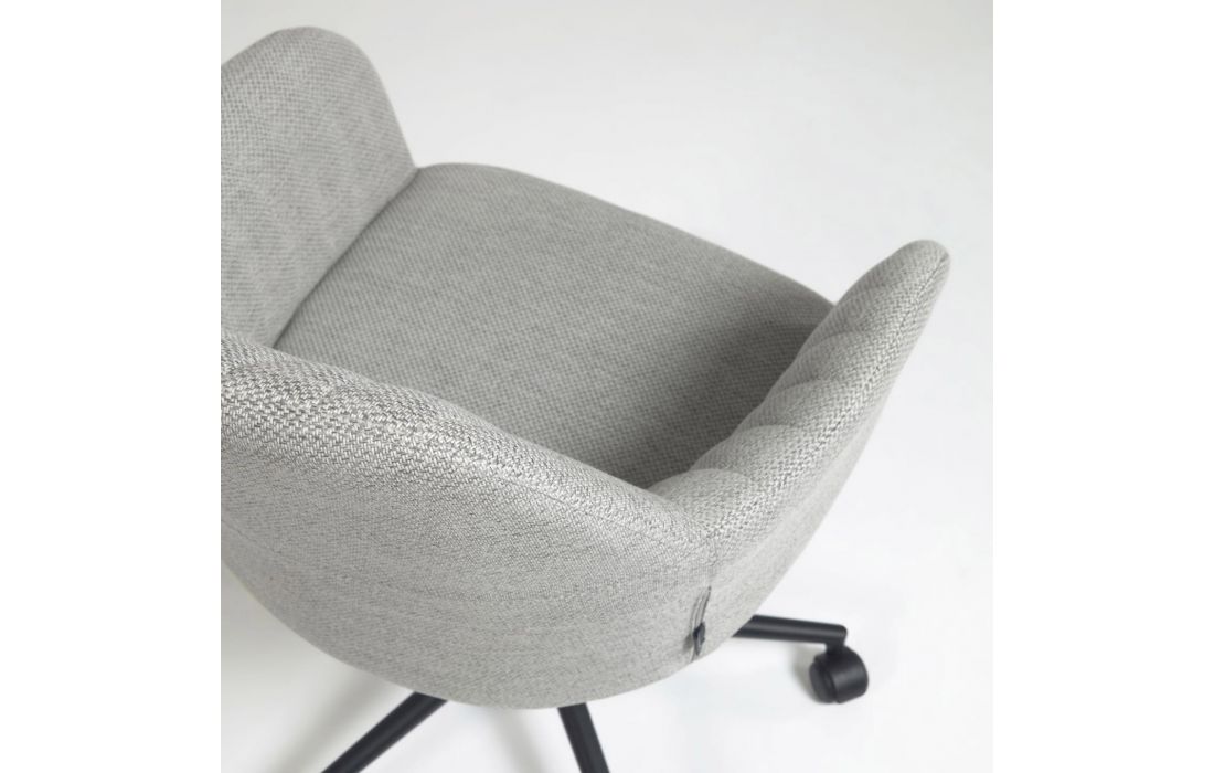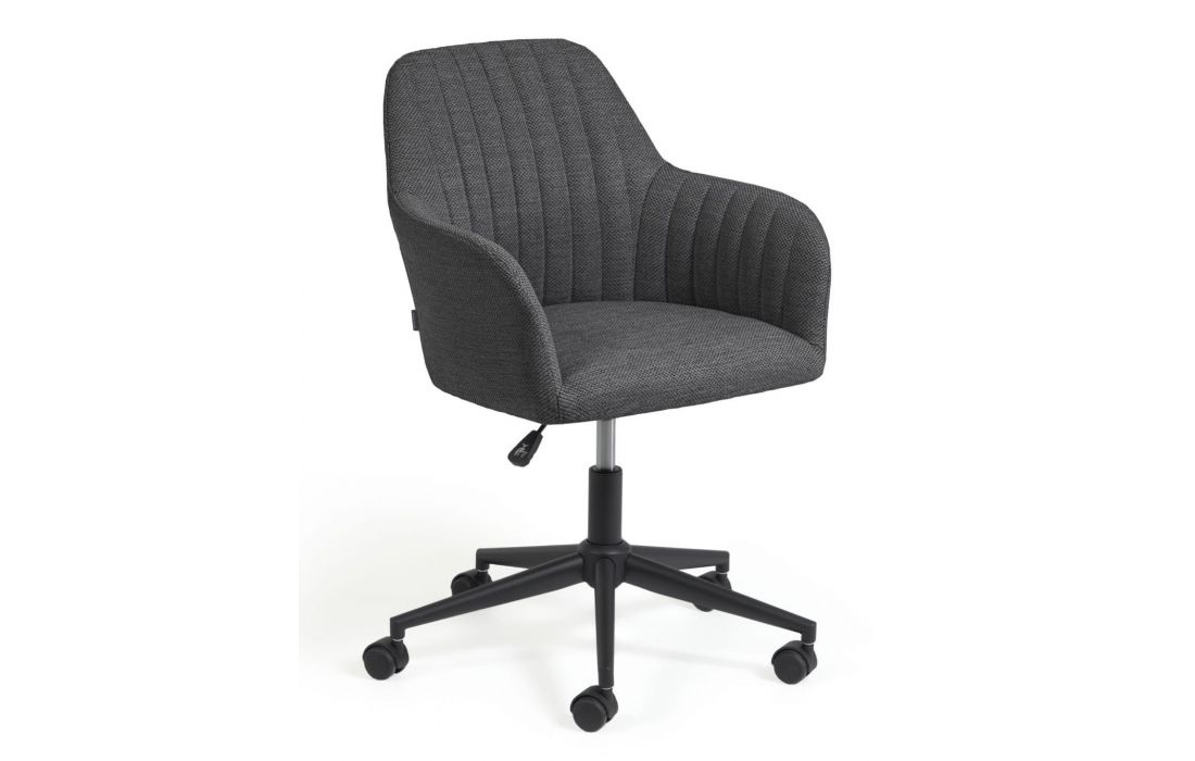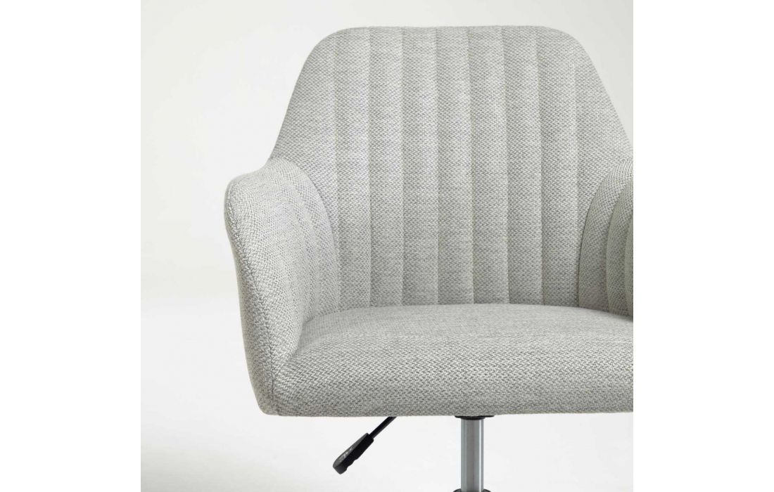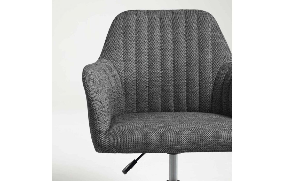 Cadeira de escritorio giratória com rodas e altura regulável, base de aço e estofo em tecido, disponivel nas cores cinza escuro e cinza claro
