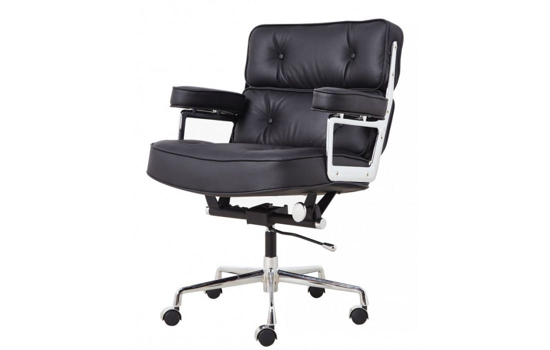 Cadeira de escritório giratoria com mecanismo giratório de elevação a gás com inclinação e bloqueio, regulação de altura por sistema de elevação a gás com estofo frontal em pele top preta e costas pele sintetica preta