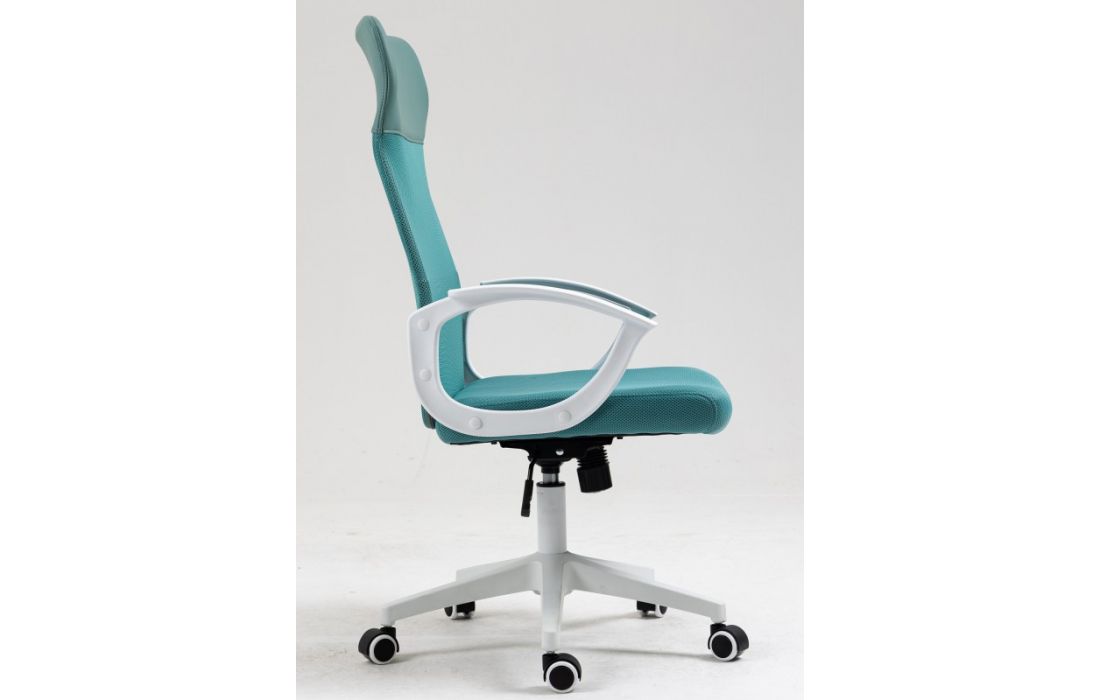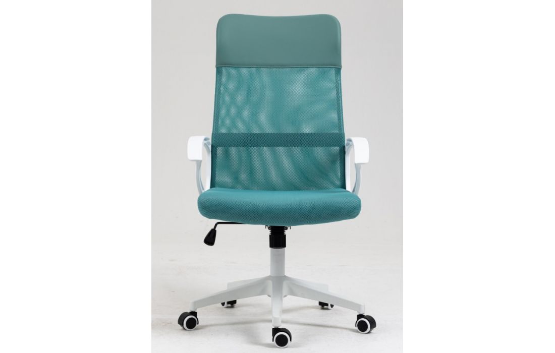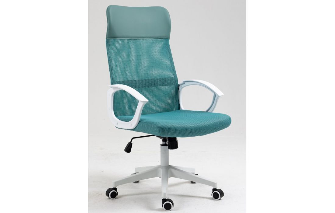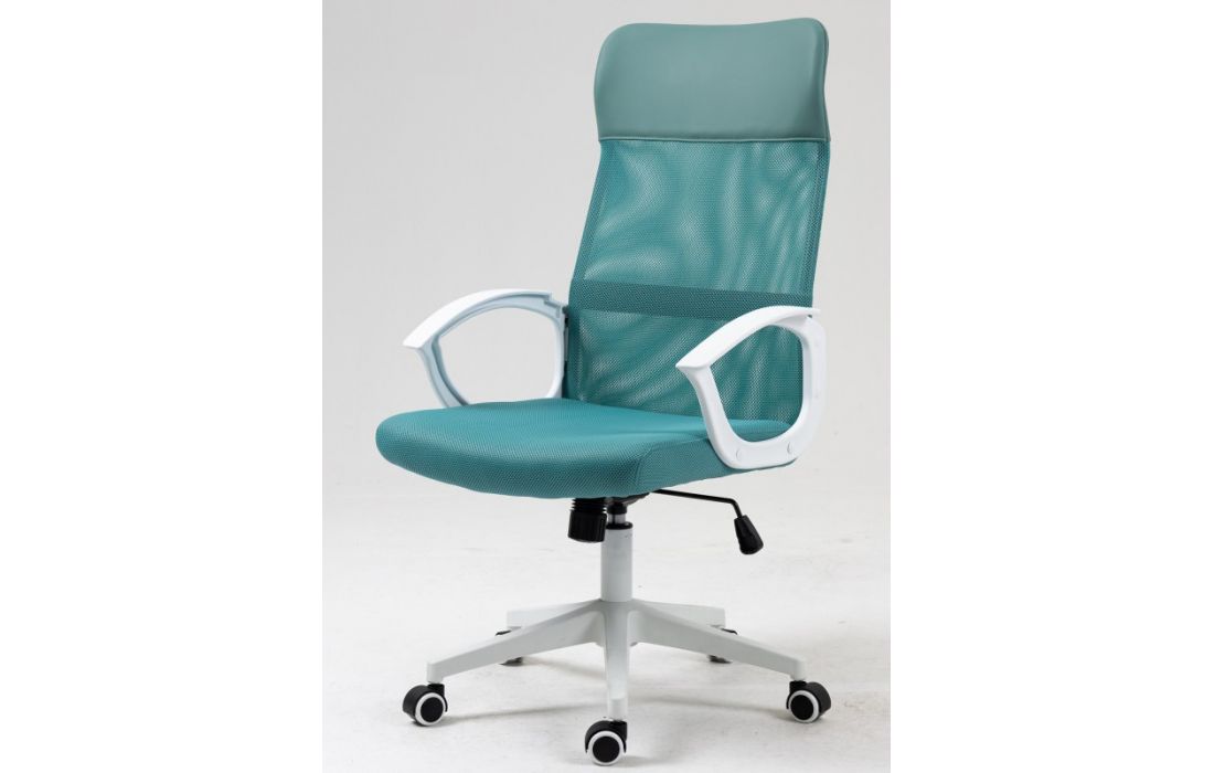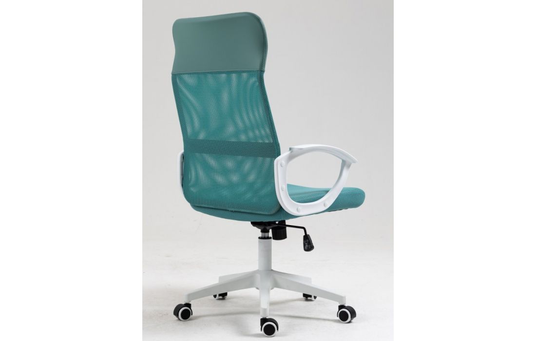 Cadeira de escritório giratoria com mecanismo giratório de elevação a gás com inclinação e bloqueio, estofo em rede verde, cabeceira de pele sintética e assento de tecido verde