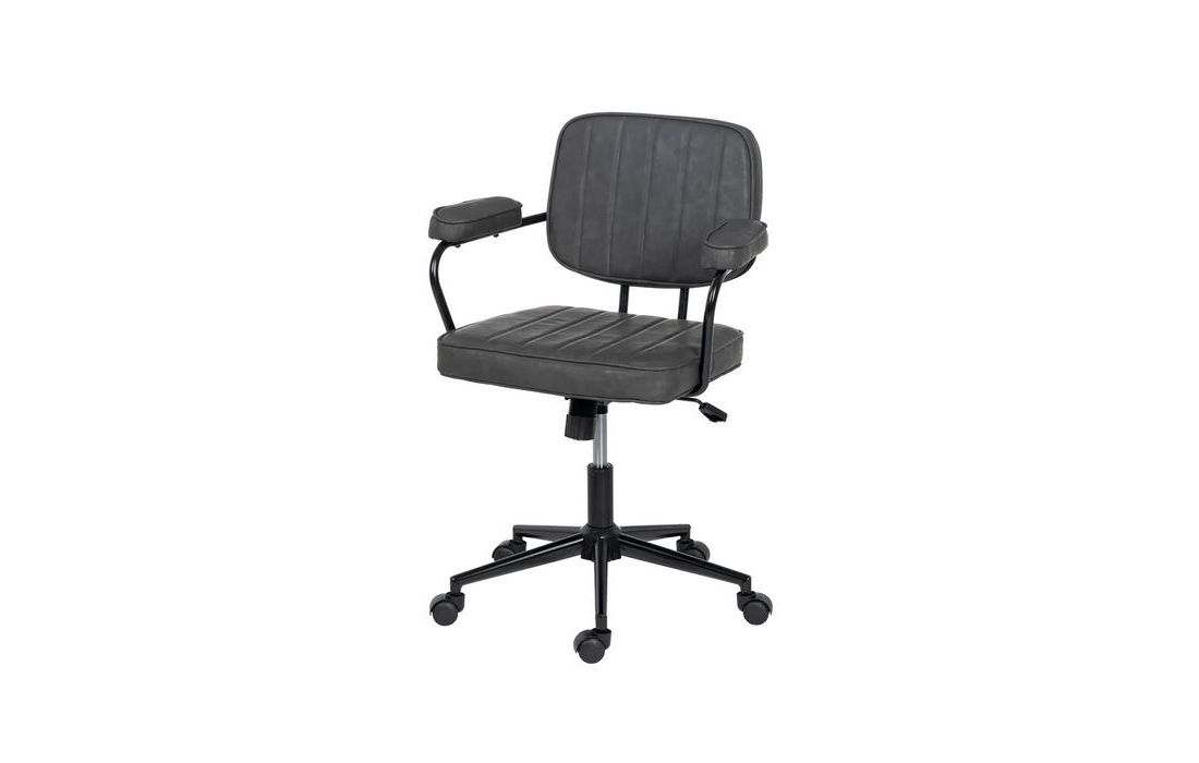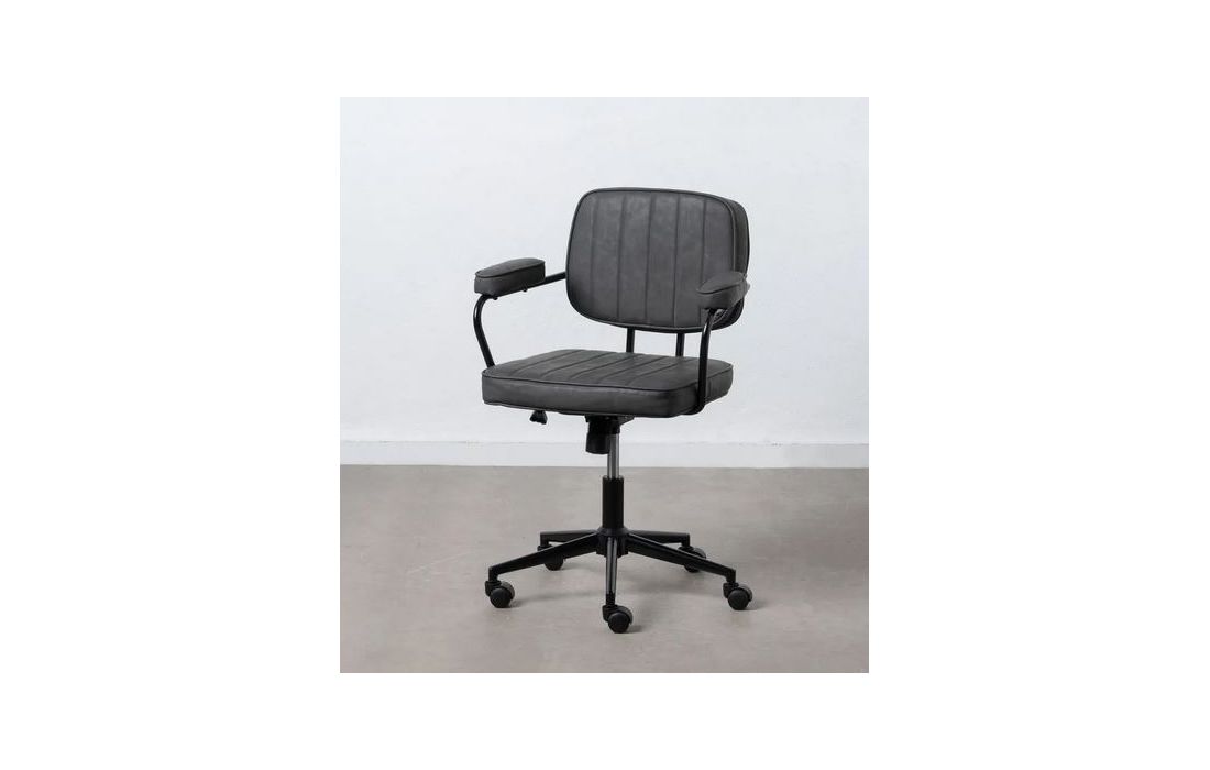 Cadeira de escritorio com rodas, estrutura em metal e estofo em pele sintetica cor preta