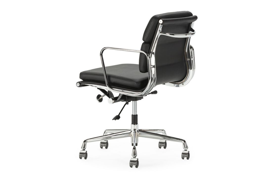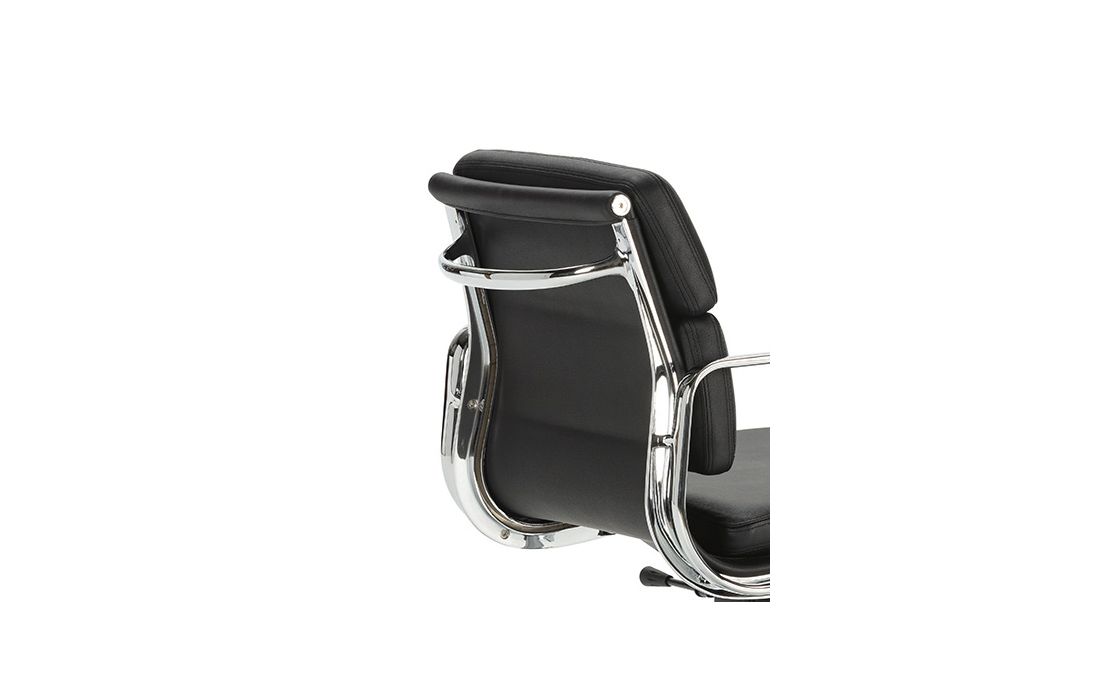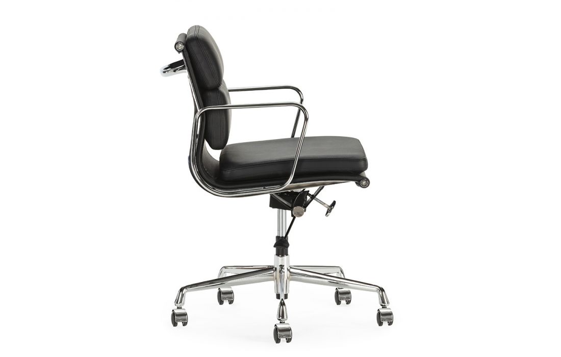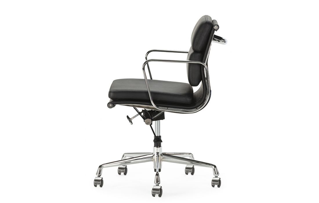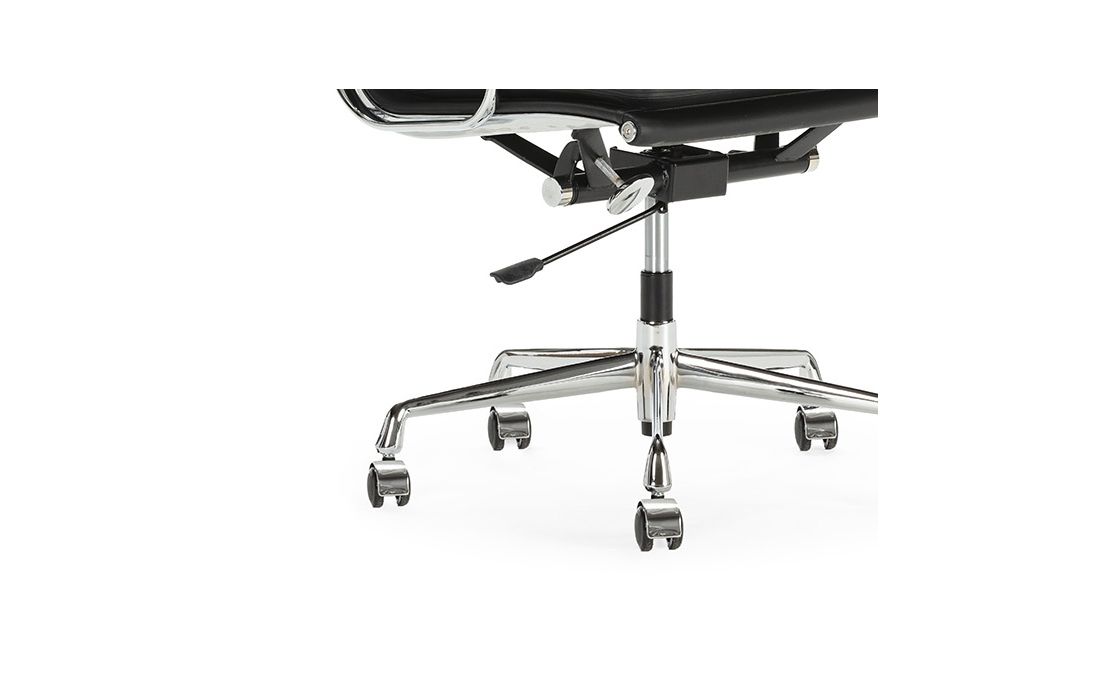 Cadeira de escritorio de altura regulável com rodas, estrutura em aluminio cor cromado e estofo em pele preta