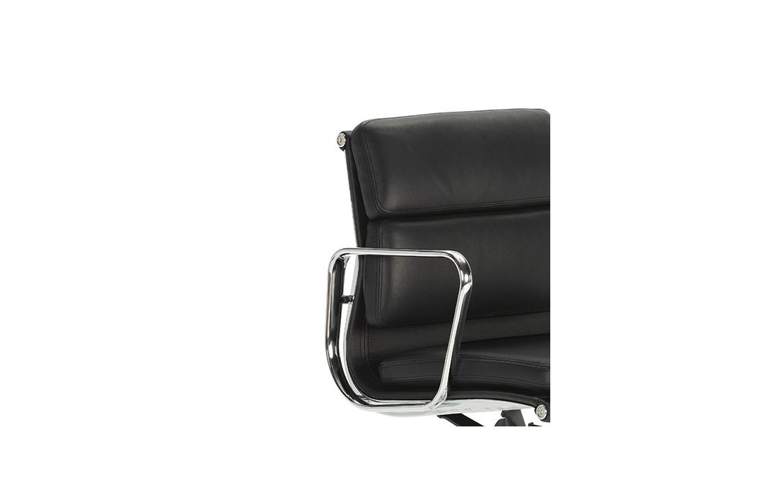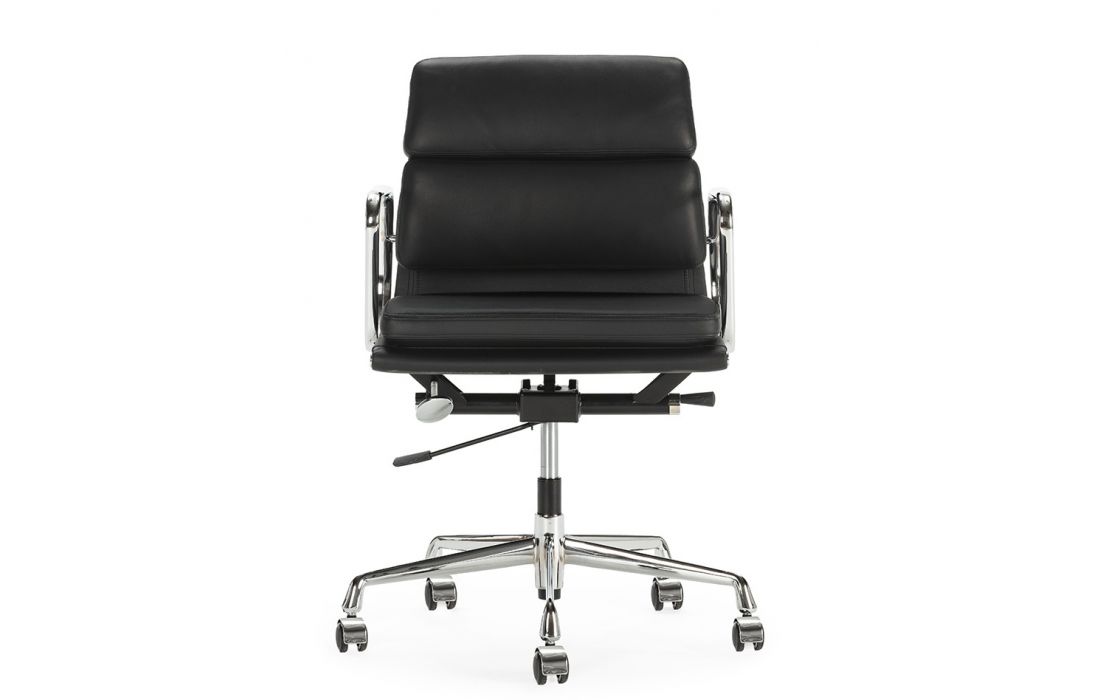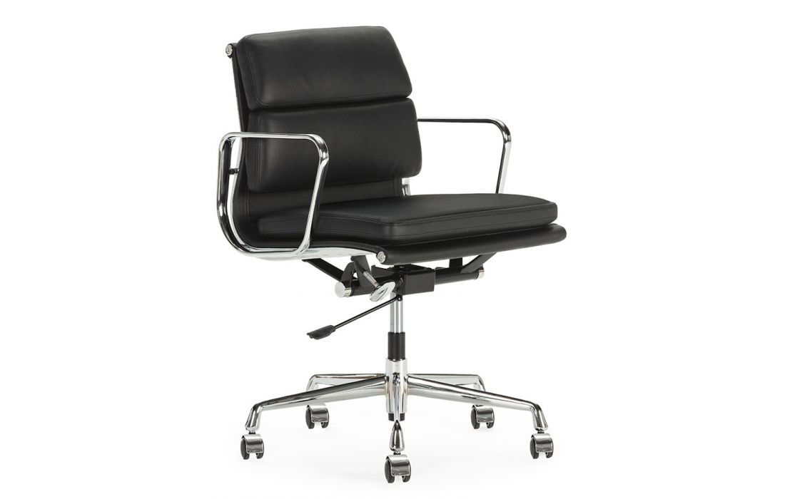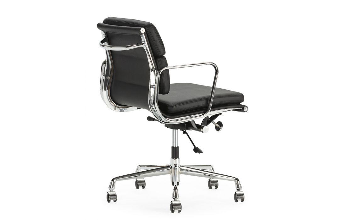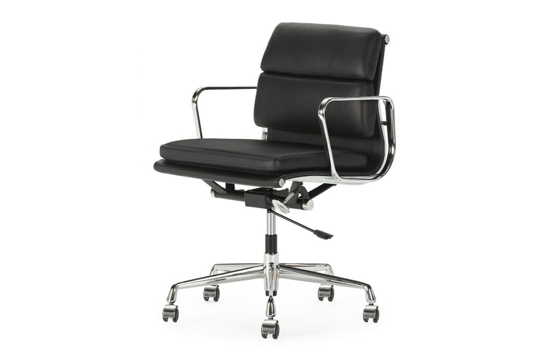 Cadeira de escritorio de altura regulável com rodas, estrutura em aluminio cor cromado e estofo em pele preta