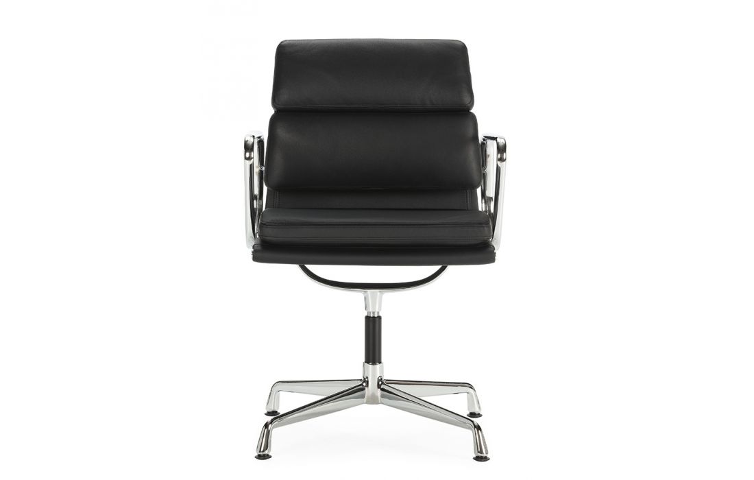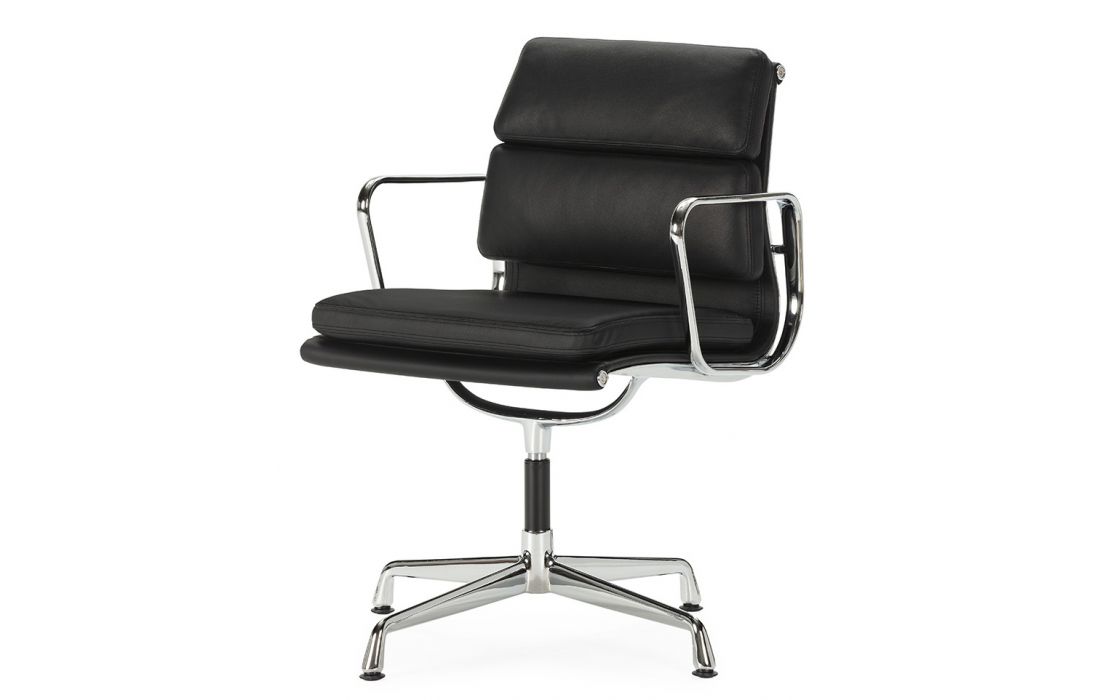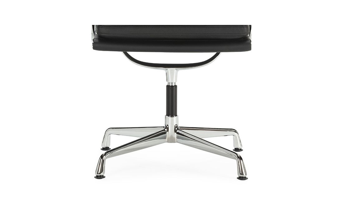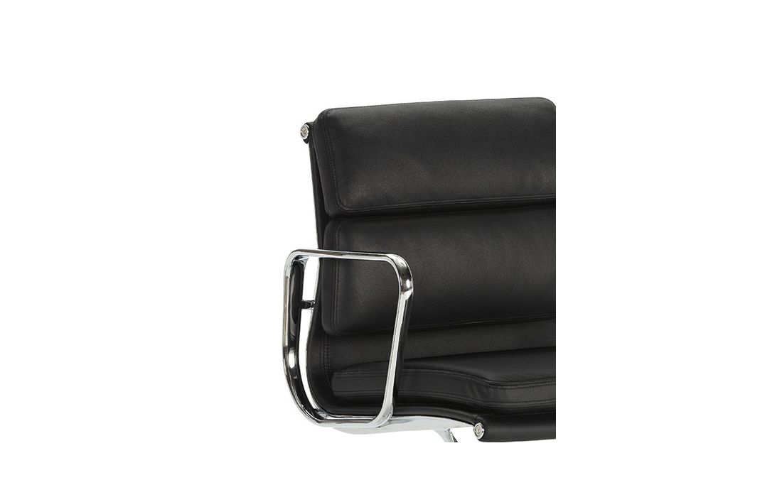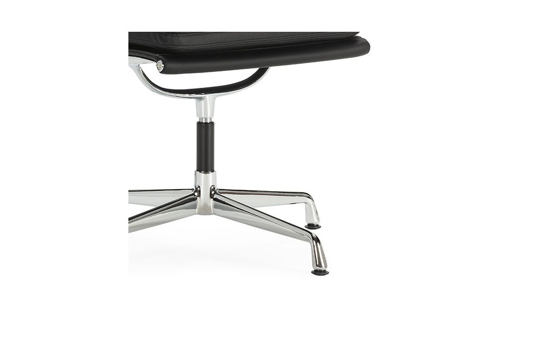 Cadeira de escritorio com estrutura em aluminio cor cromado e estofo em pele preta