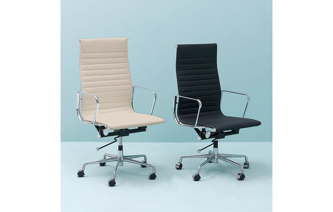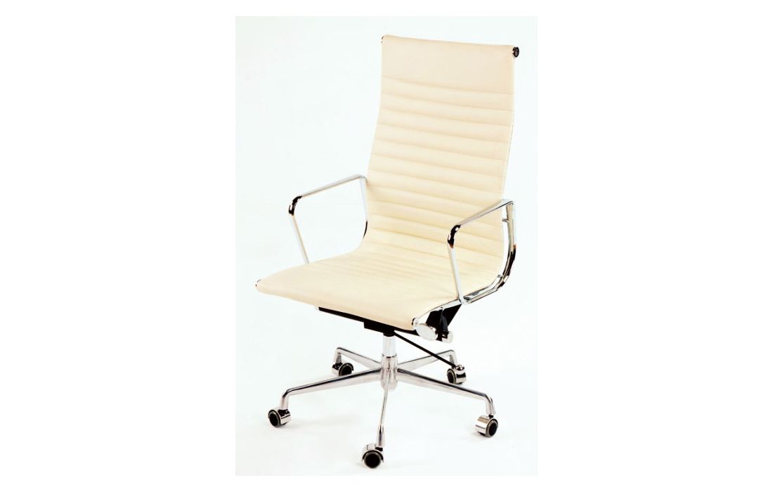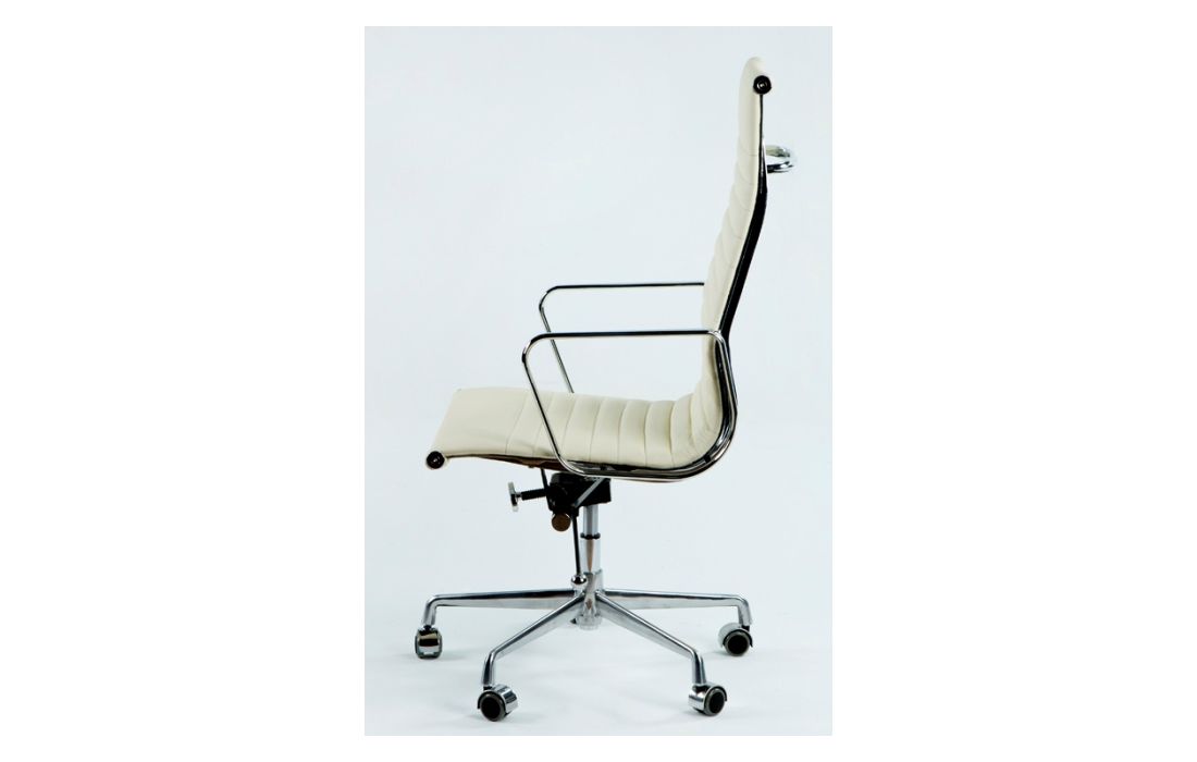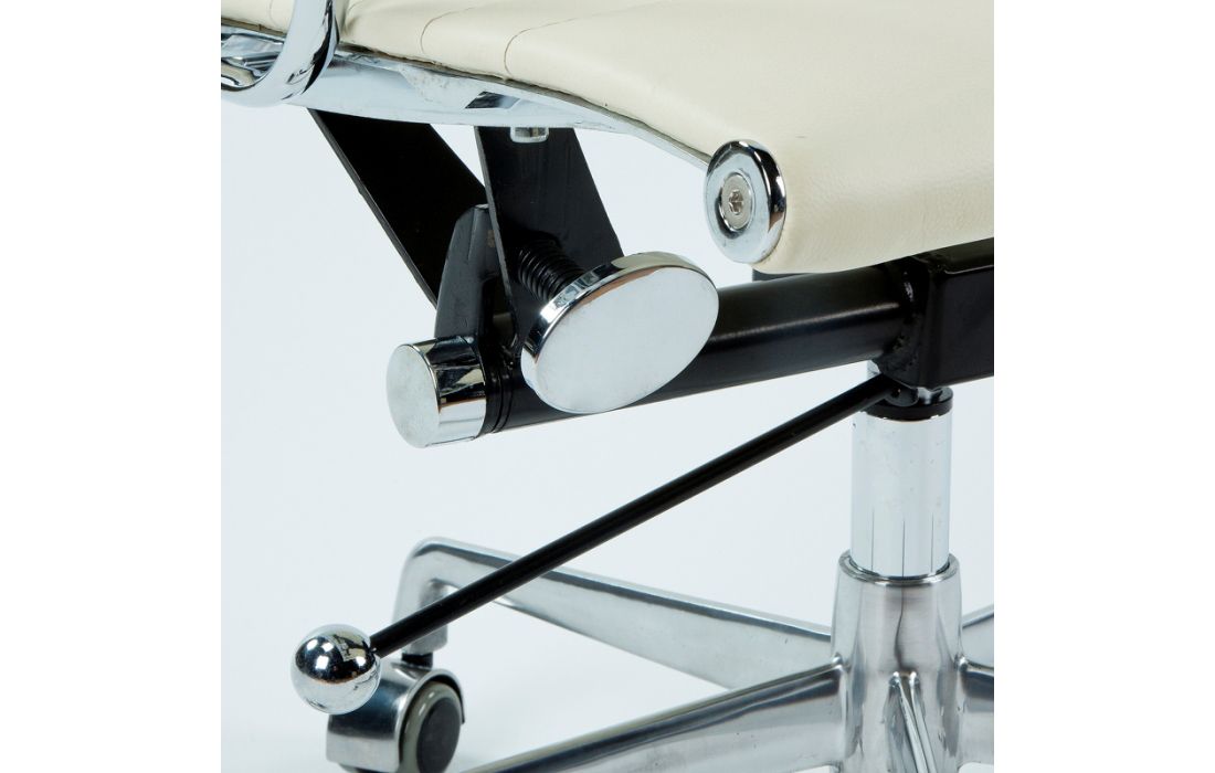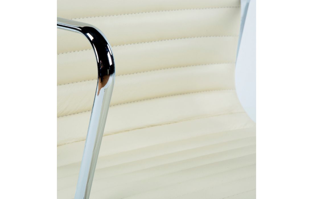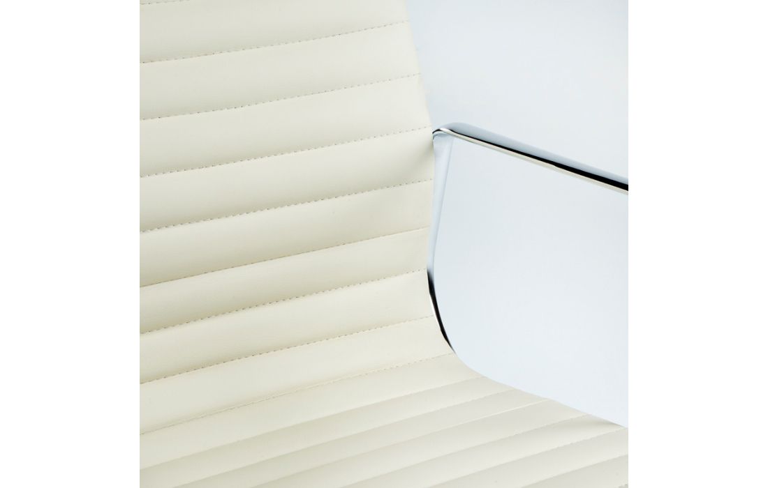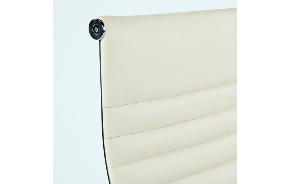 Cadeira de escritorio de altura regulável com rodas, estrutura em metal cor cromado e estofo em pele cor branco roto