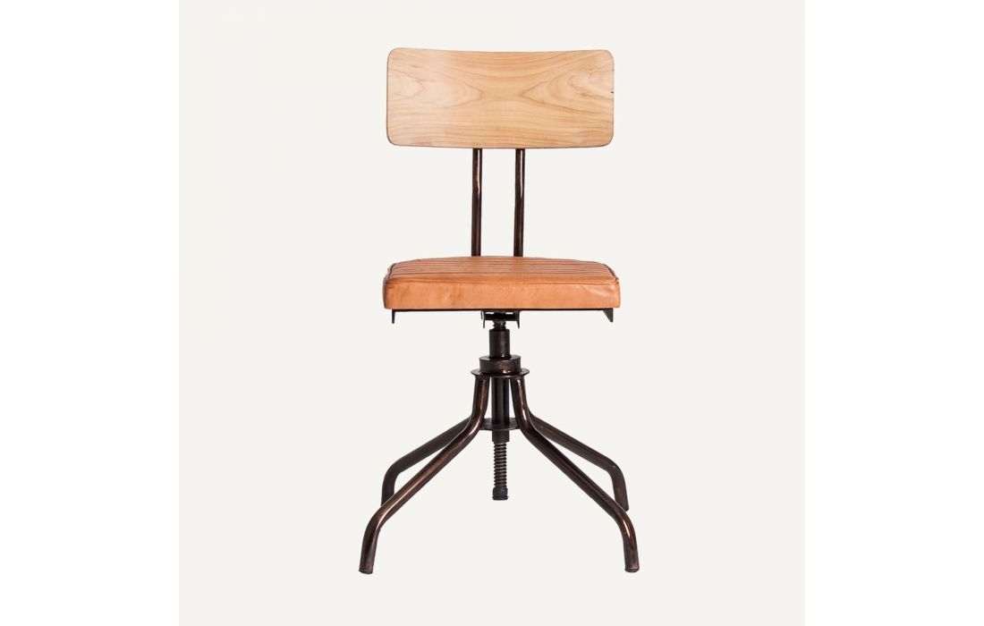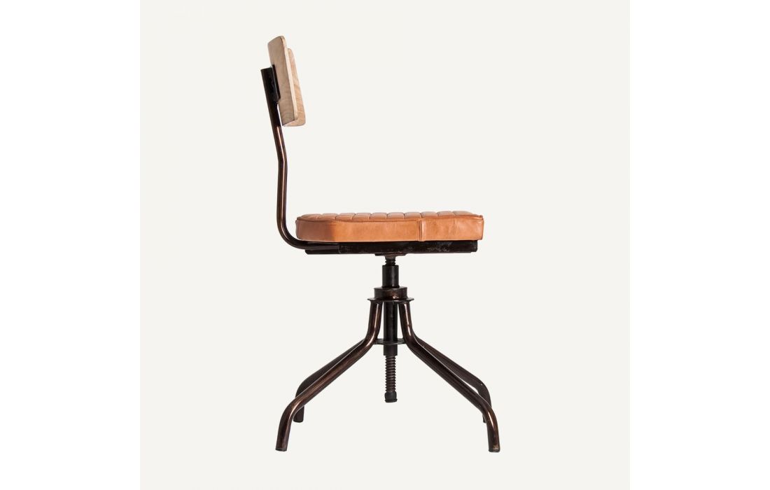Cadeira de escritorio de altura regulável com estrutura em ferro e estofo em couro. Estilo vintage.Destinatário :