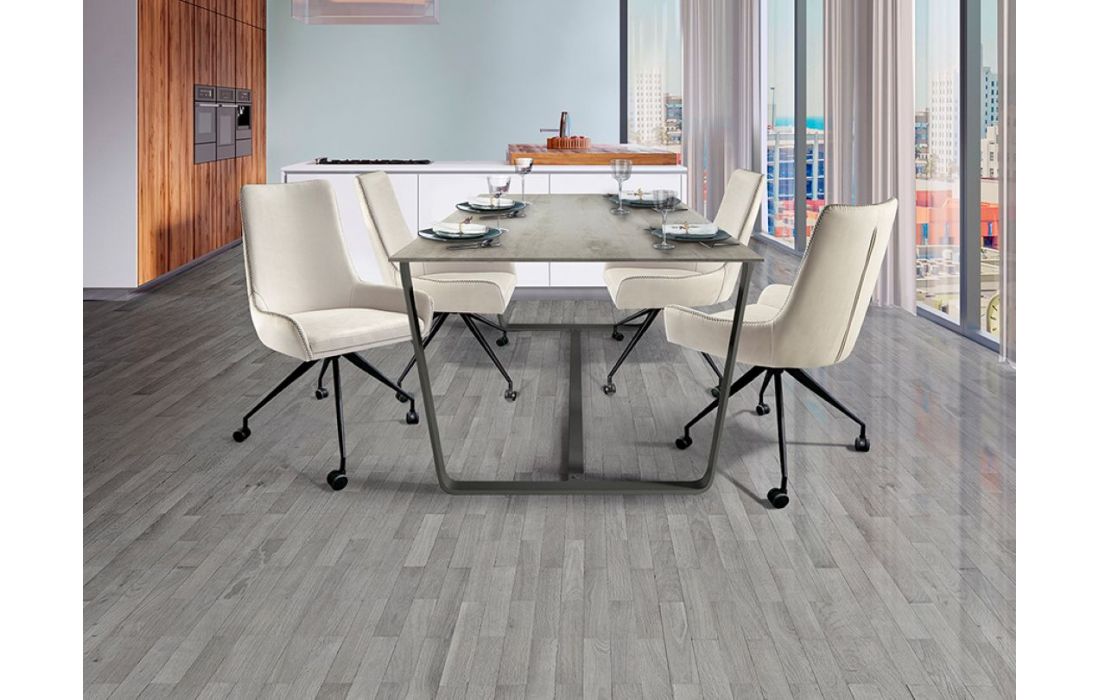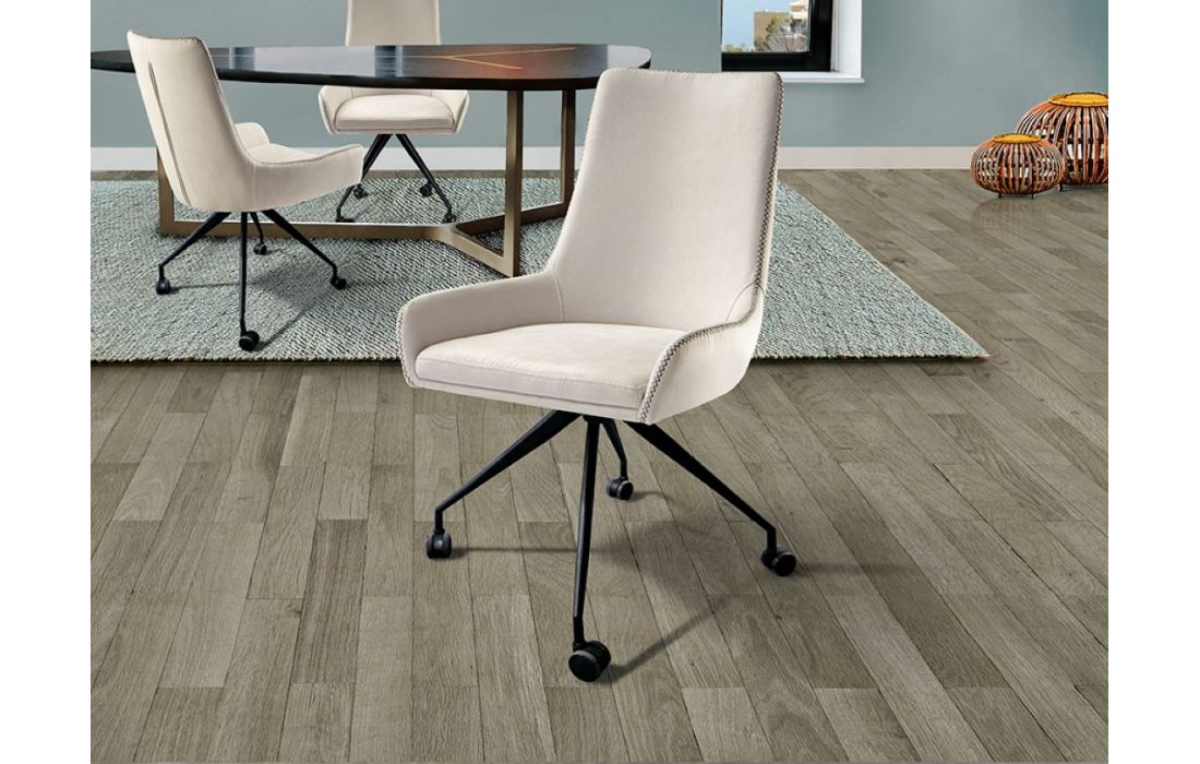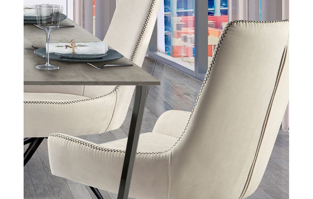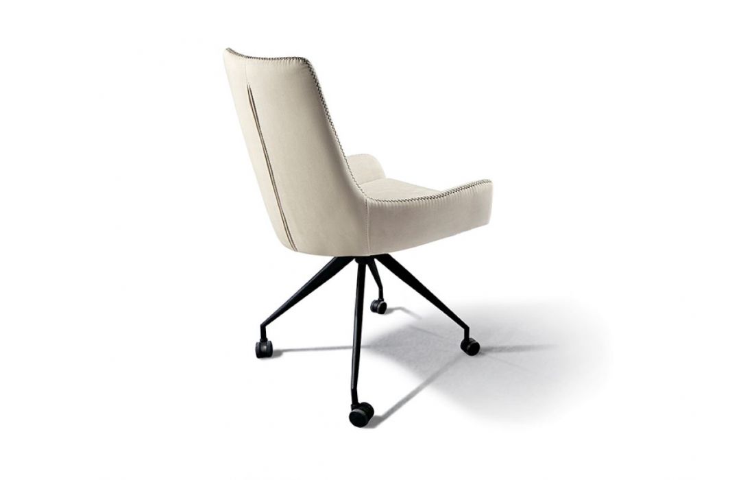 Cadeira de escritório em tecido na cor branco com pesponto decorativo em cinzento e pés em metalDestinatário :